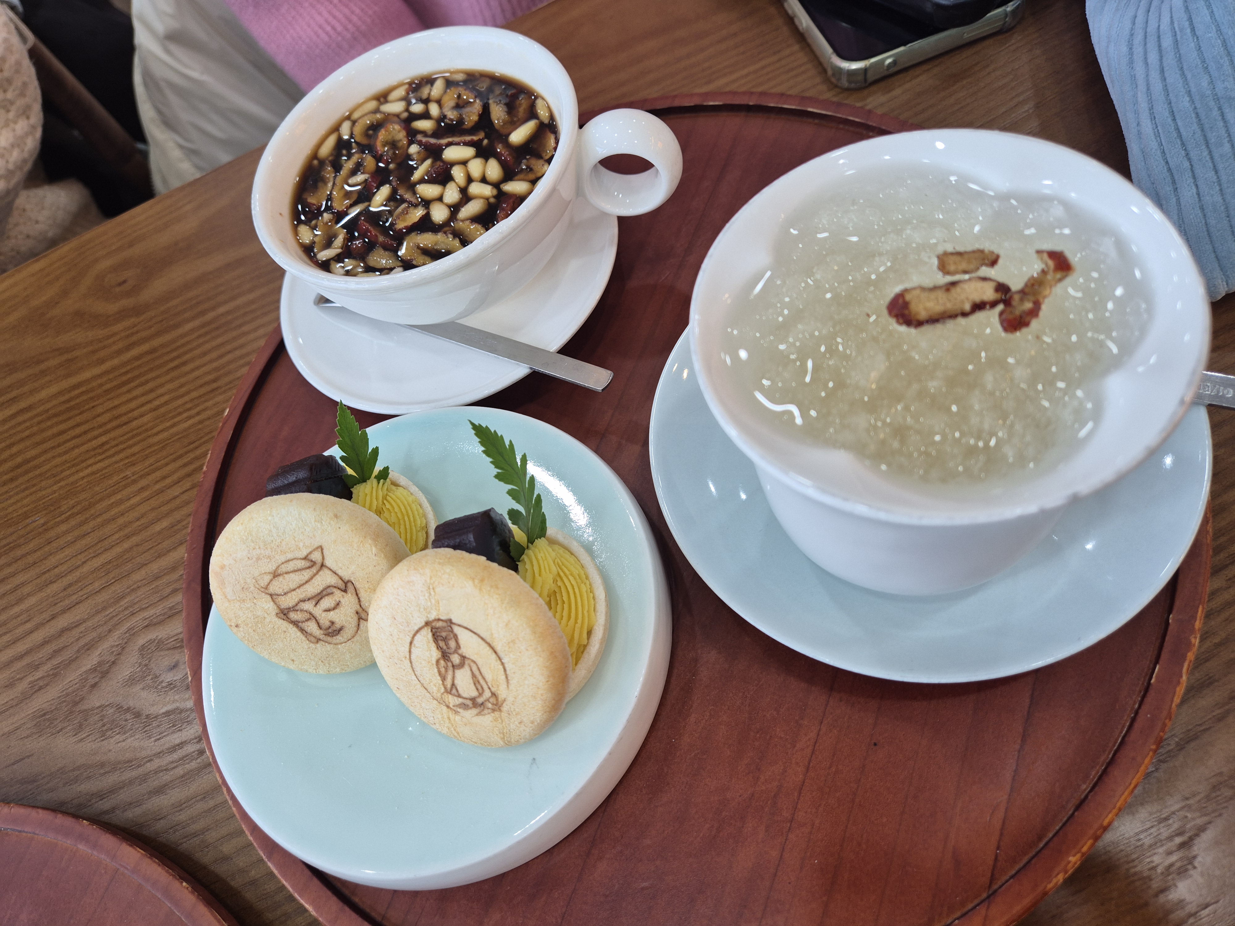 사유 공간 찻집은 말 그대로 찻집입니다. 커피는 드립 커피인거 같아요. 라떼를 시켜 드신분이 맛이... 영.... 아니라고 하시더라고요. 쌍화탕은 너무 진했고, 생강 유자차는 조금 밍숭맹숭했어요. 모나카는 음.... 특별히 맛있다는 생각이 안들었네요. 그에 비하여 가격이 비싼 느낌이였어요. 1층 푸드코트 옆에도 투썸이 있으니 커피 마시며 쉬고 싶을때는 투썸이 났겠어요.^^