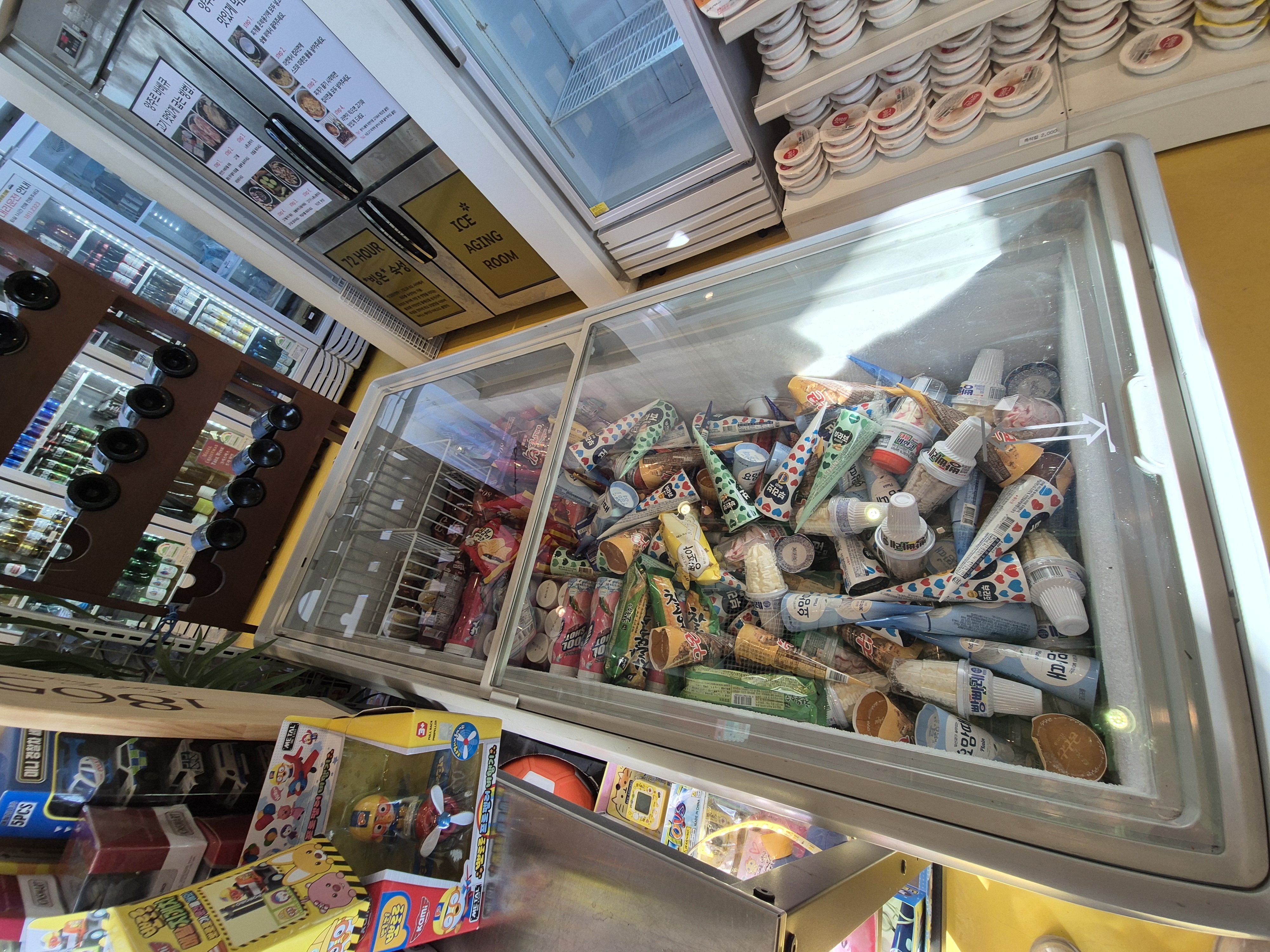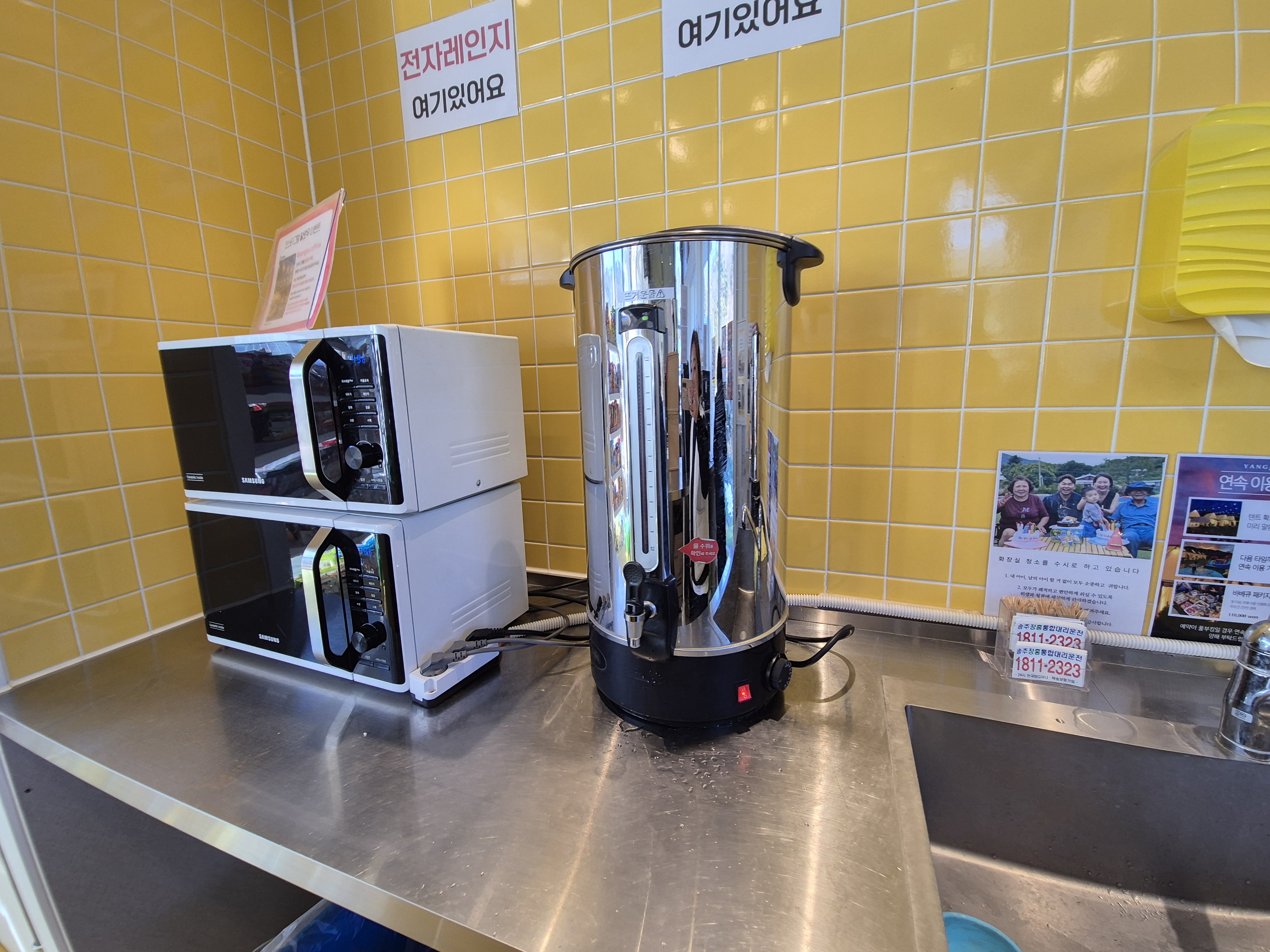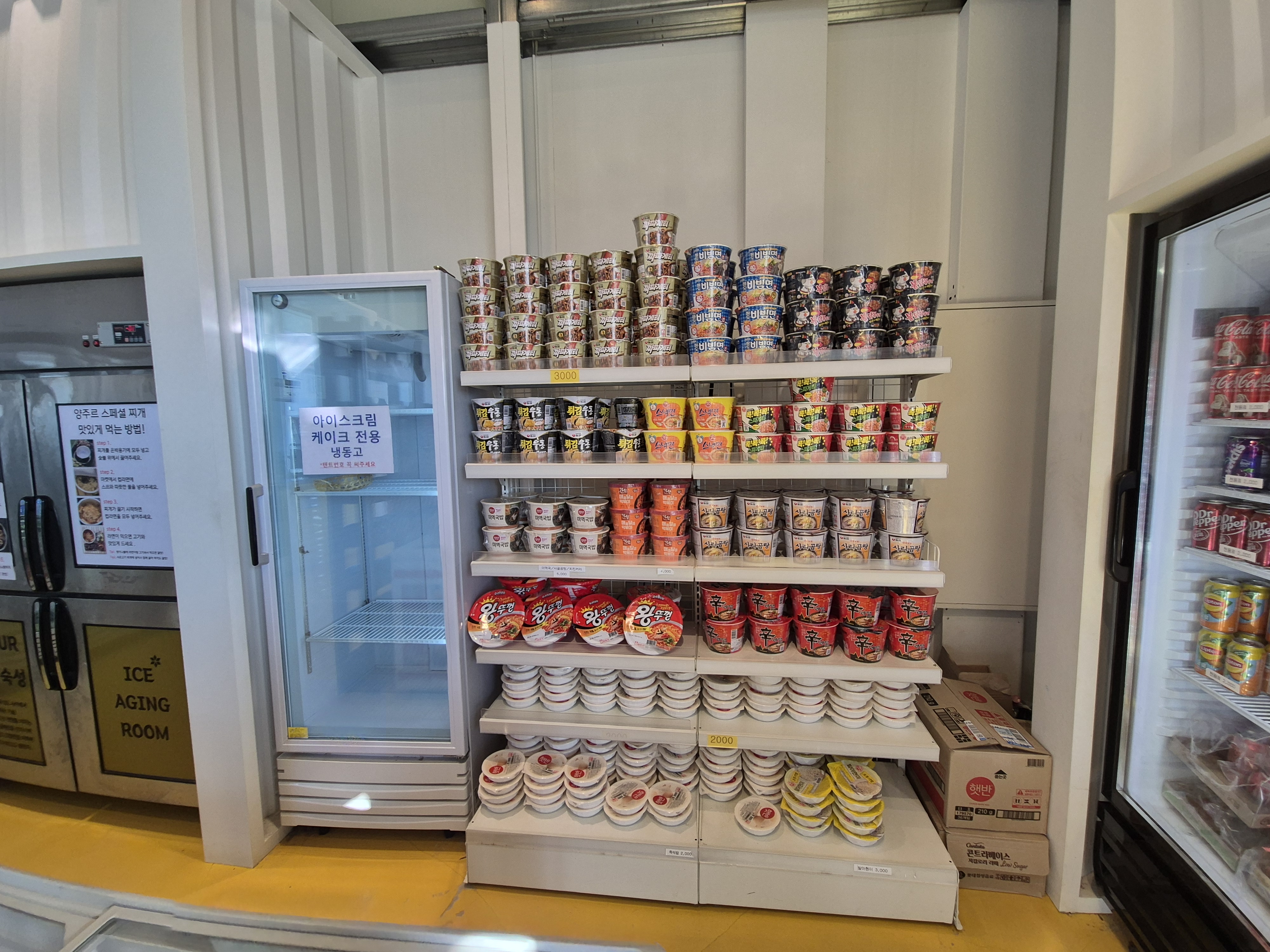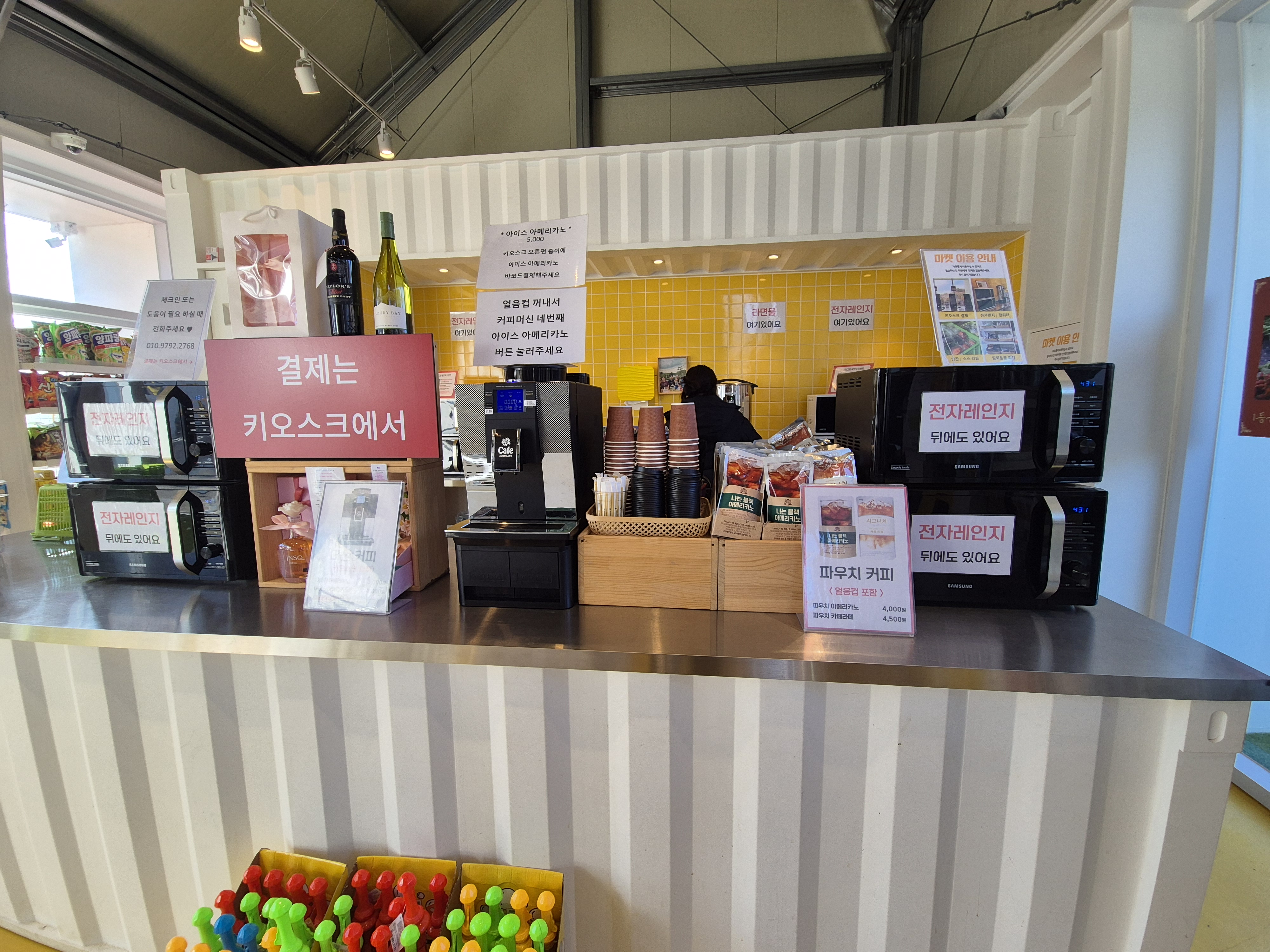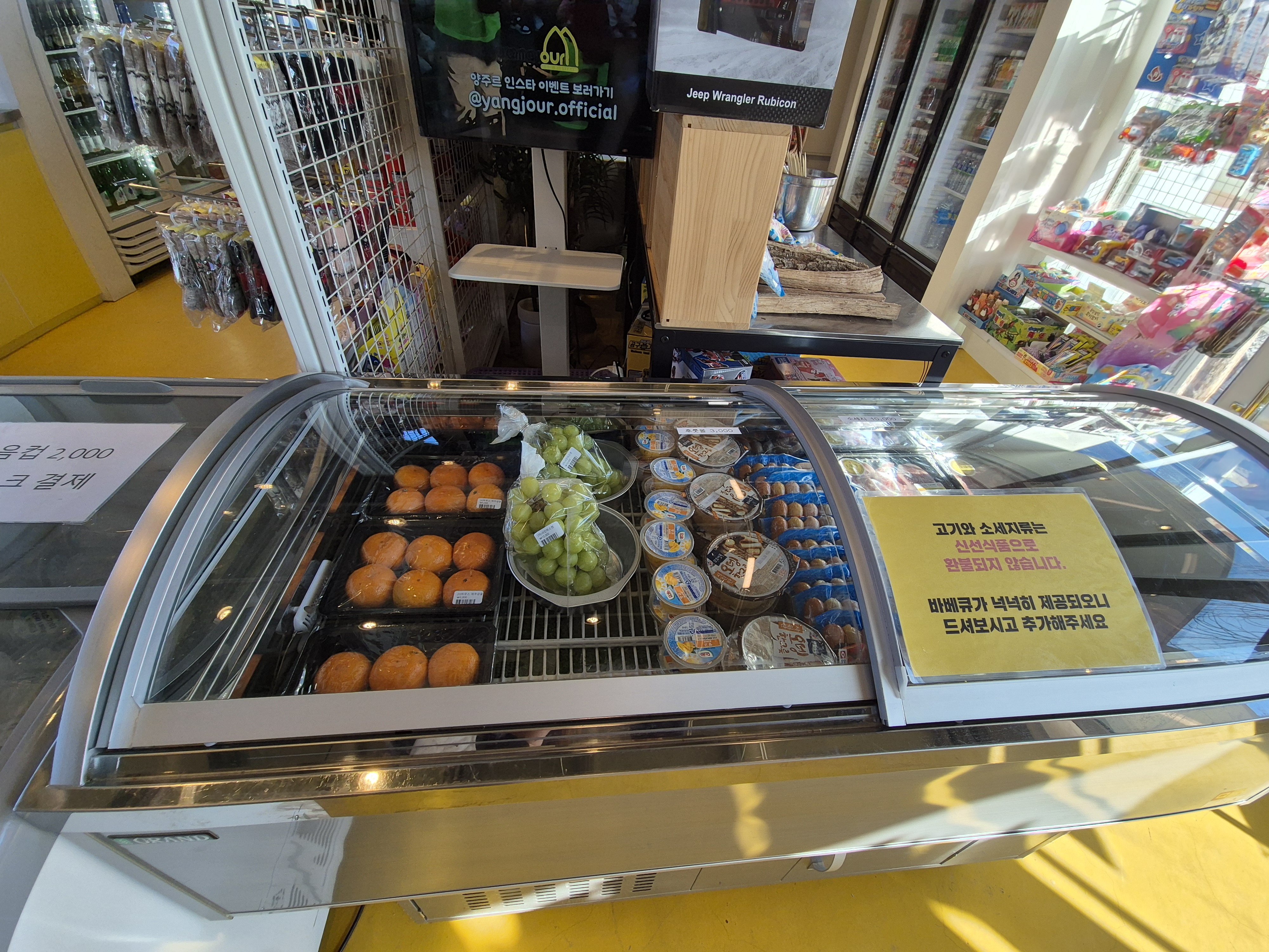 양주르는 마켓도 엄청 깨끗해요. 깔끔하죠~ 바비큐에 햇반이 없어요. 마켓에서 구입하고 전자레인지 돌려 가면 되고 여기에 밑반찬이 무한리필도 여기 있어서 초록바구니에 담아 가면 됩니다. 시스템이 참 깔끔하단 생각이 들더라고요. 마켓이 입구초입에 있다 보니 텐트와는 거리가 멀긴 해요 필요한 게 있으면 한 번에 움직이면 좋아요.