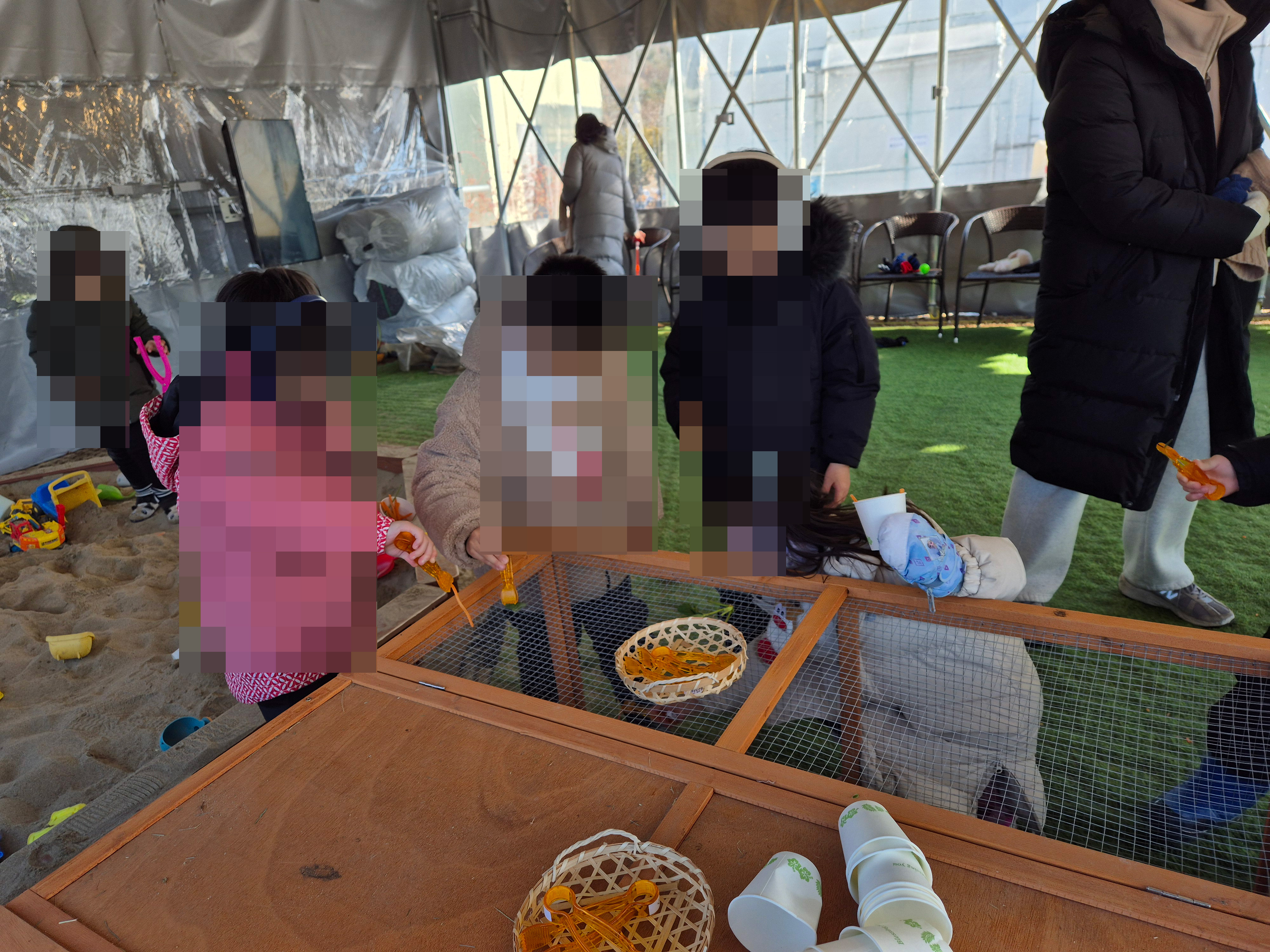 정해진 시간마다 아이들이 닭알 줍기를 해요. 시간이 되면 직원분이 "확성기로 닭알 줍기를 합니다~" 하고 알려 주시니 잘 생각해 두었다가 꼭 챙겨서 체험하세요. 아이들은 요것도 참 좋아하더라고요. ㅎㅎ 날달걀은 깨질 위험이 있어서 인지 맥반석 달걀인 건 안 비밀입니다. 순진한 우리 아이들은 삶은 달걀이라도 참 좋아했어요.