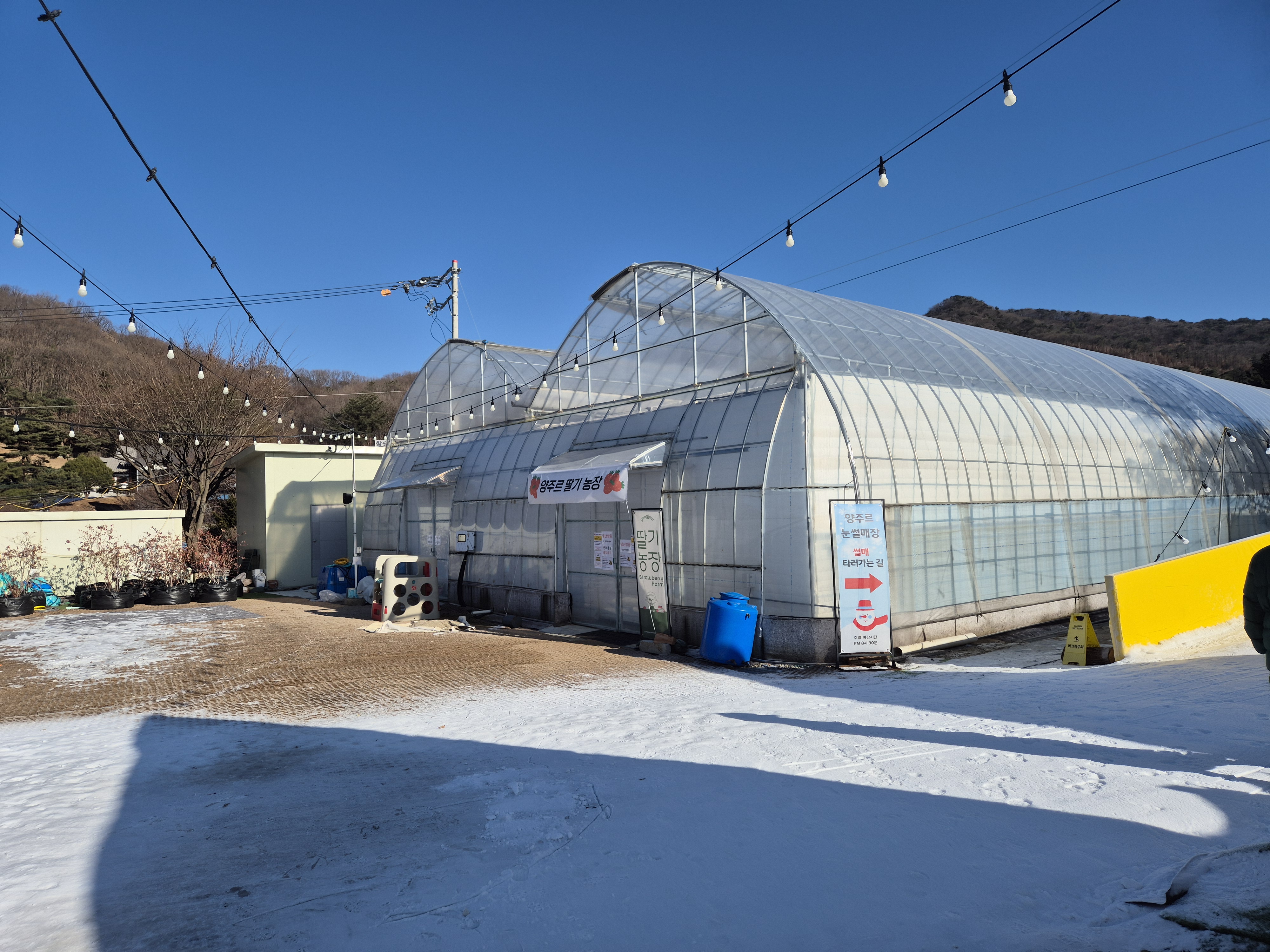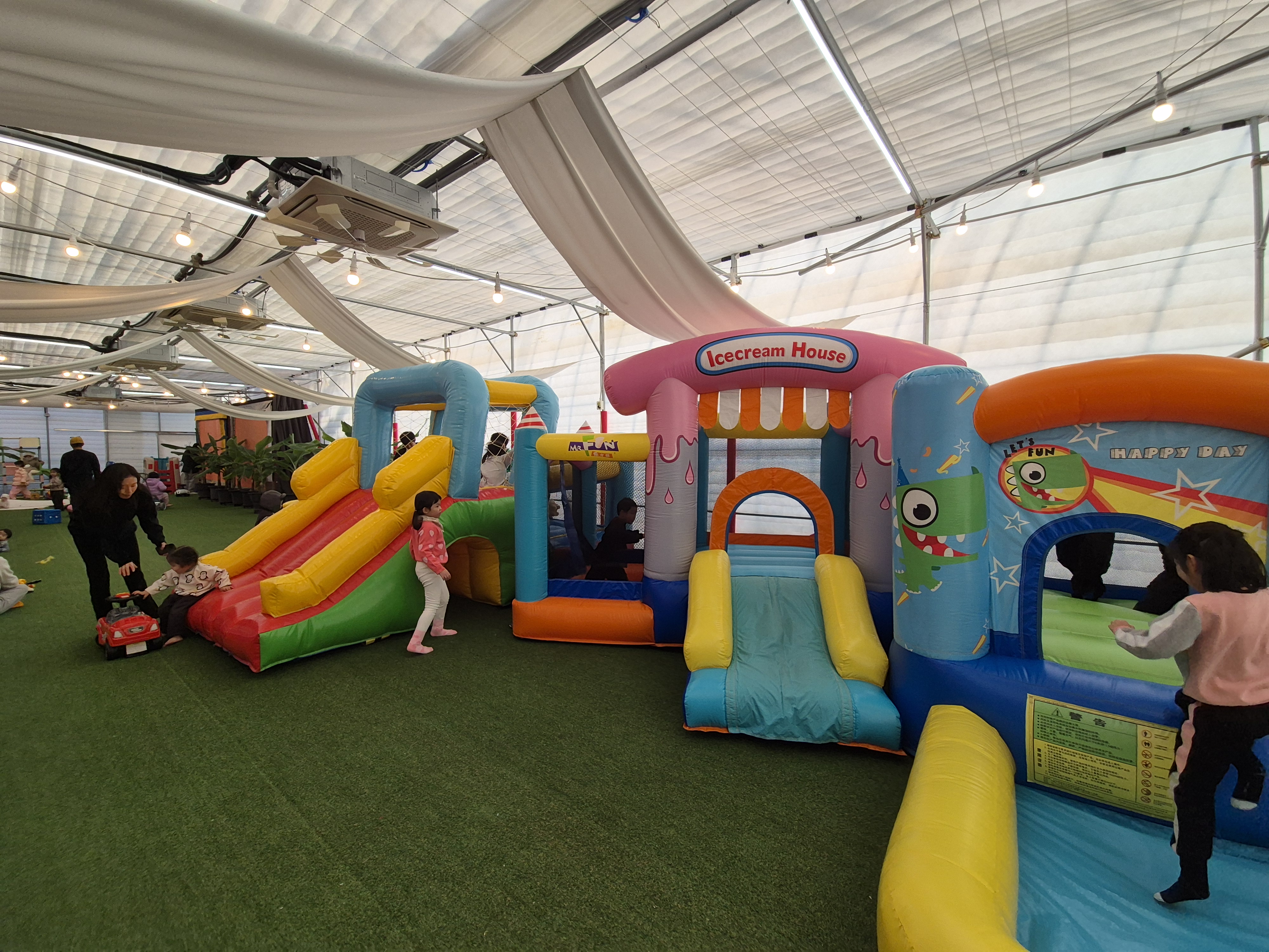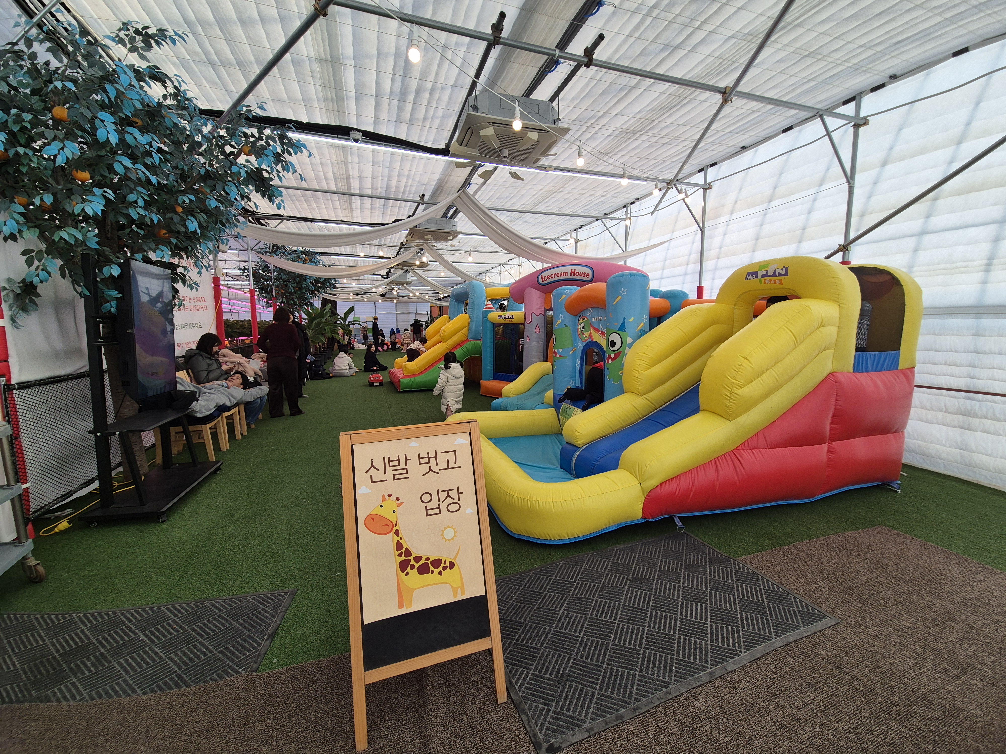 양주르 딸기 농장에 아직은 딸기가 안 열어서 실내 놀이터가 있어요. 여기도 에어바운스도 있고 아이들이 따뜻하게 즐겁게 놀기 좋아요. 바로 옆에 딸기들이 무럭무럭 자라고 있어서 딸기 향이 가득가득. 아쉽지만 이번에는 딸기들이 아직은 덜 자라서 딸기 체험은 못 했어요.