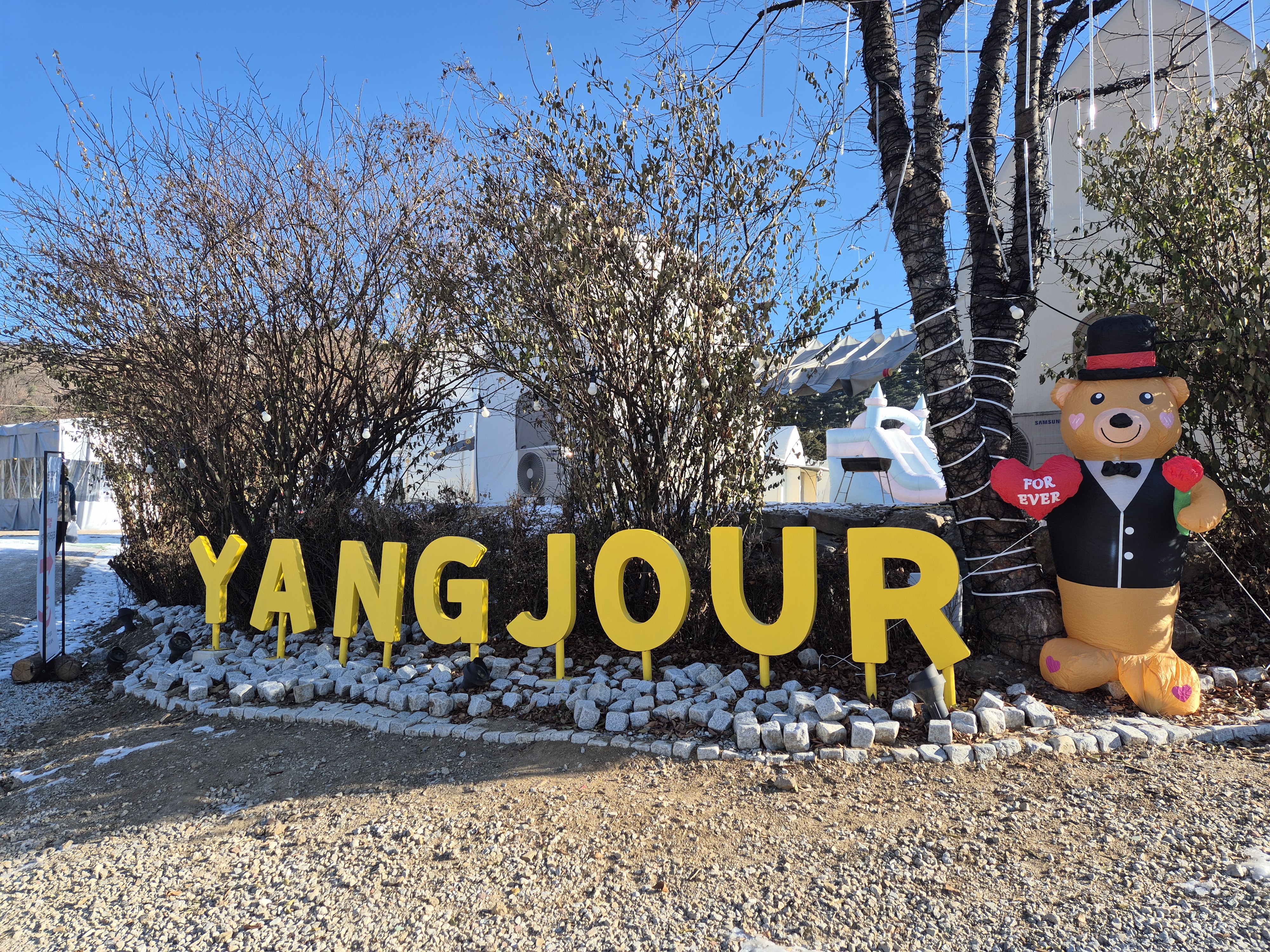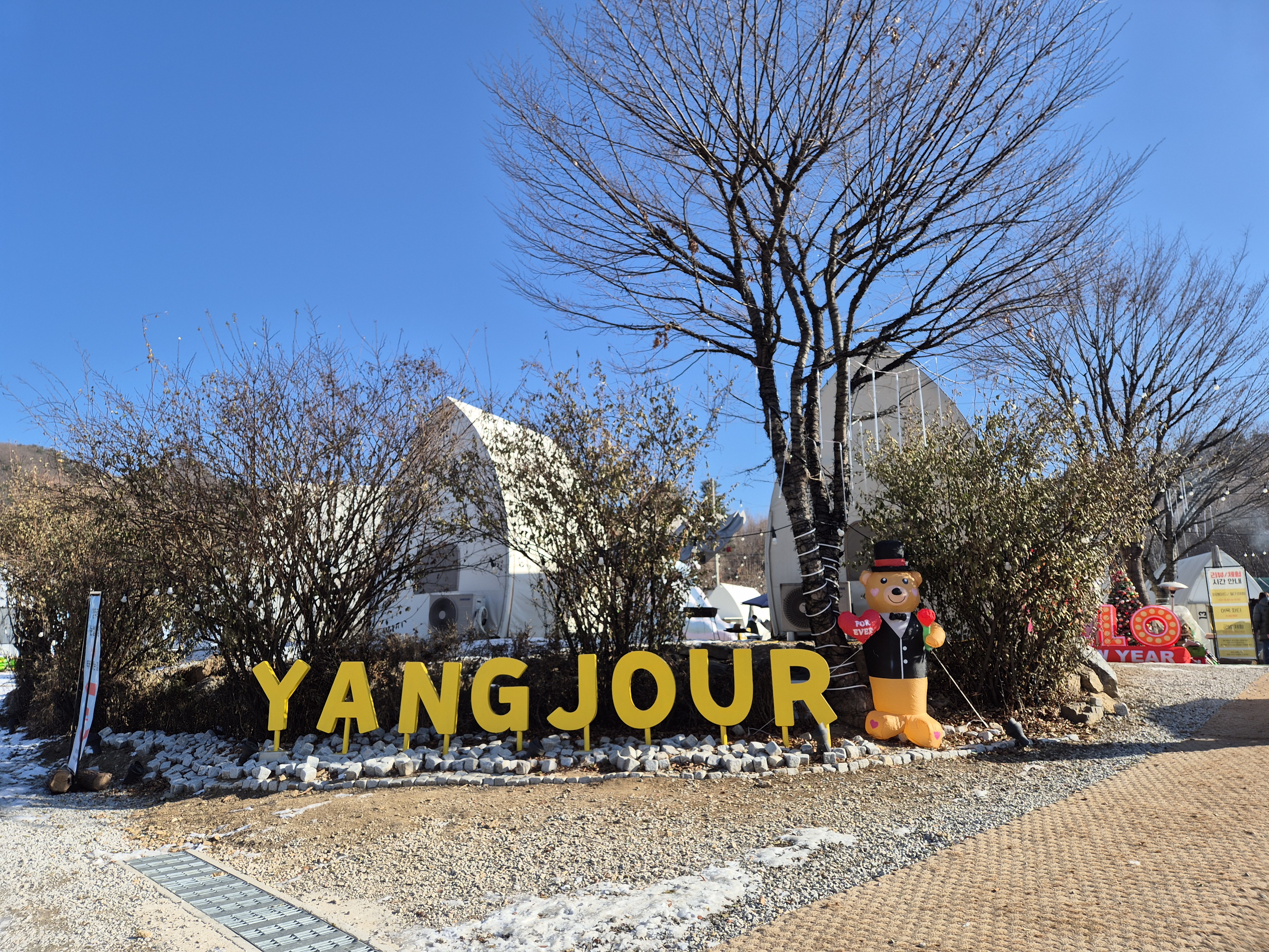 주차장에서 양주르 들어가는 입구예요. 얼굴도 잘 보이지 않는데 ~ 아이 얼굴 보자마자 바로 인사해 주시더라고요. 갑작스러워서 카메라를 너무 늦게 켜서 담지 못했네요, ㅎㅎㅎㅎ 입구를 들어서면 바로 비눗방울도 고르고 첫인상이 아이에게 엄청 신나고 즐거운 양주르 글램핑 캠핑장~~ 저도 덩달아 신이 나요 신이나~♪