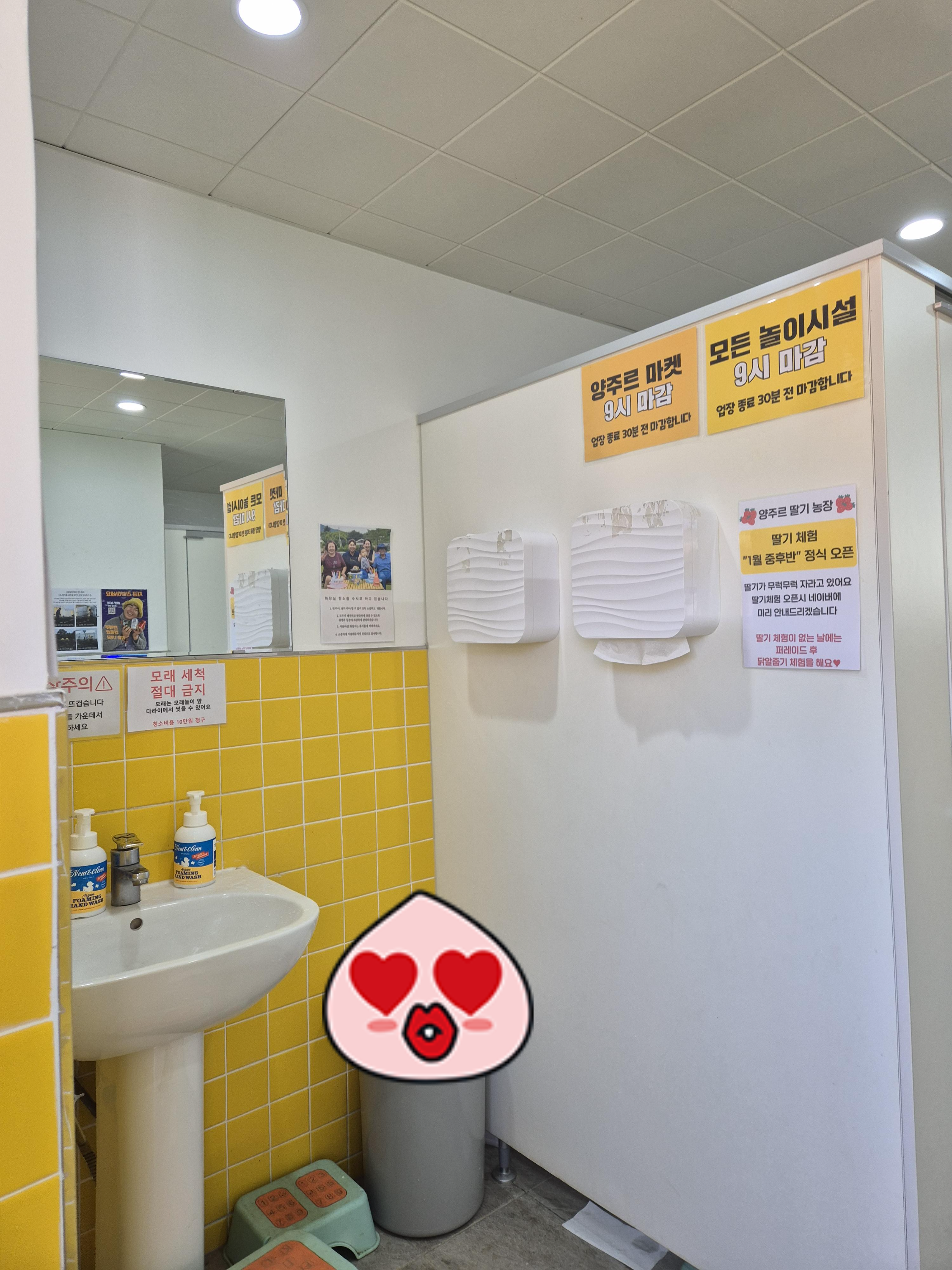 양주르는 화장실도 깔끔해요. 입구 바로 옆에 화장실이 있어요. 세면대에 아이들이 이용하기 편하게 발판도 당연히 있고 따뜻한 물이 나와서 좋아요. 모래 놀이터에서 놀고 씻는 곳도 화장실 옆에 있으니 여기로 가면 됩니다.