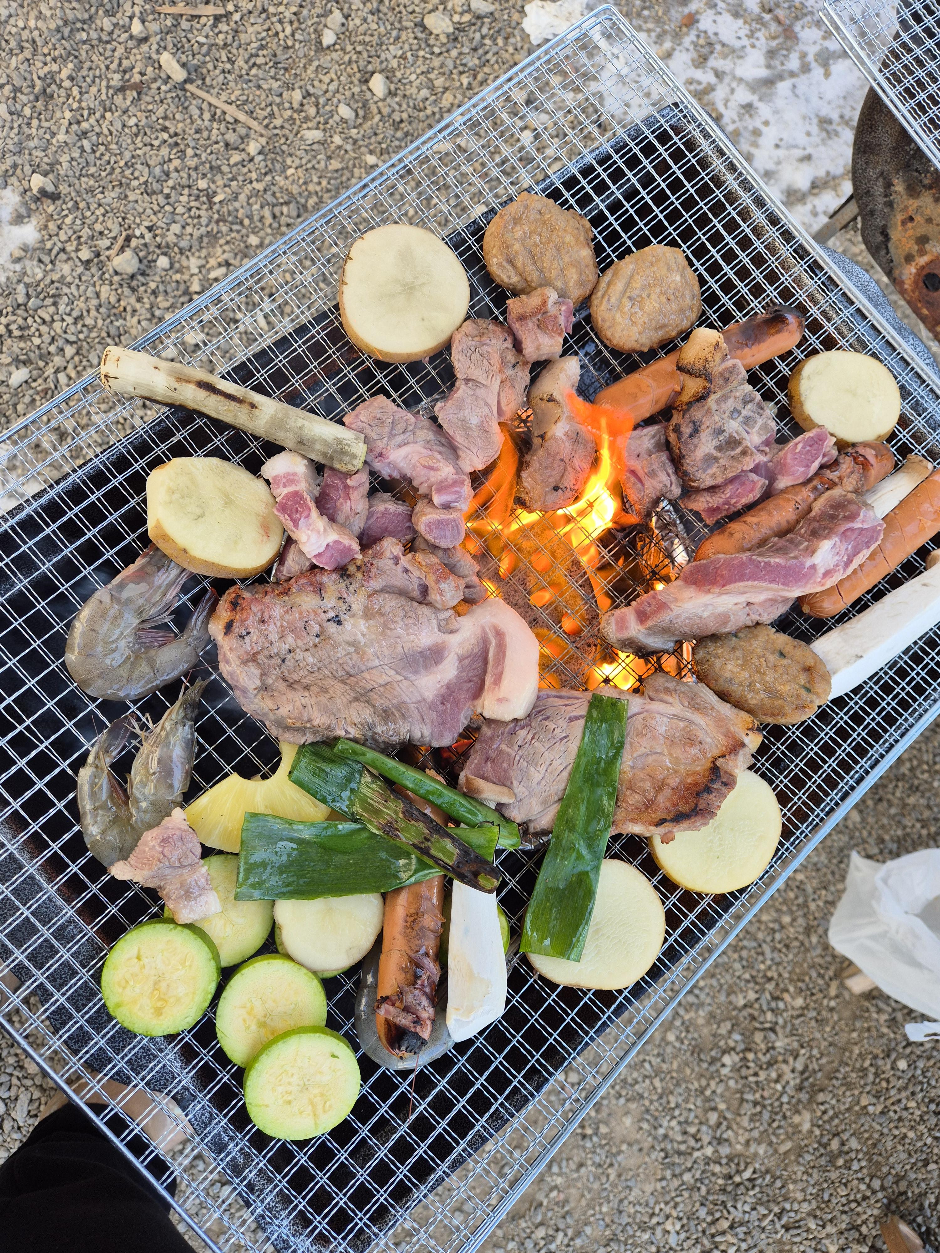 - 국내산 1등급 암퇘지 목심 250g/ 새우 / 수제고급 소시지 / 모둠 구이용 채소/ 수제 떡갈비/ 스페셜 찌개/ 밑반찬(야채, 소스)/ 쫀드기/ 컵라면