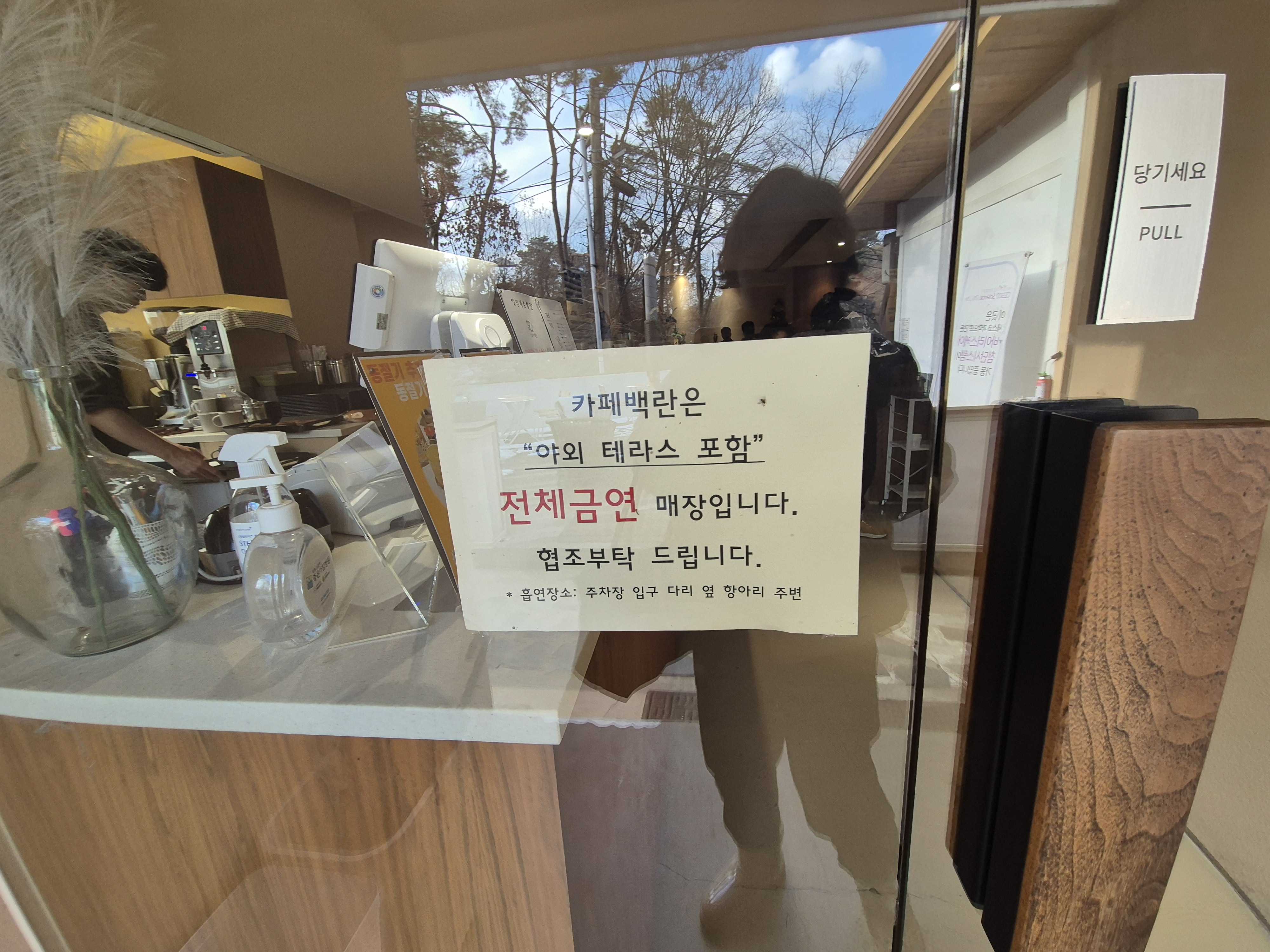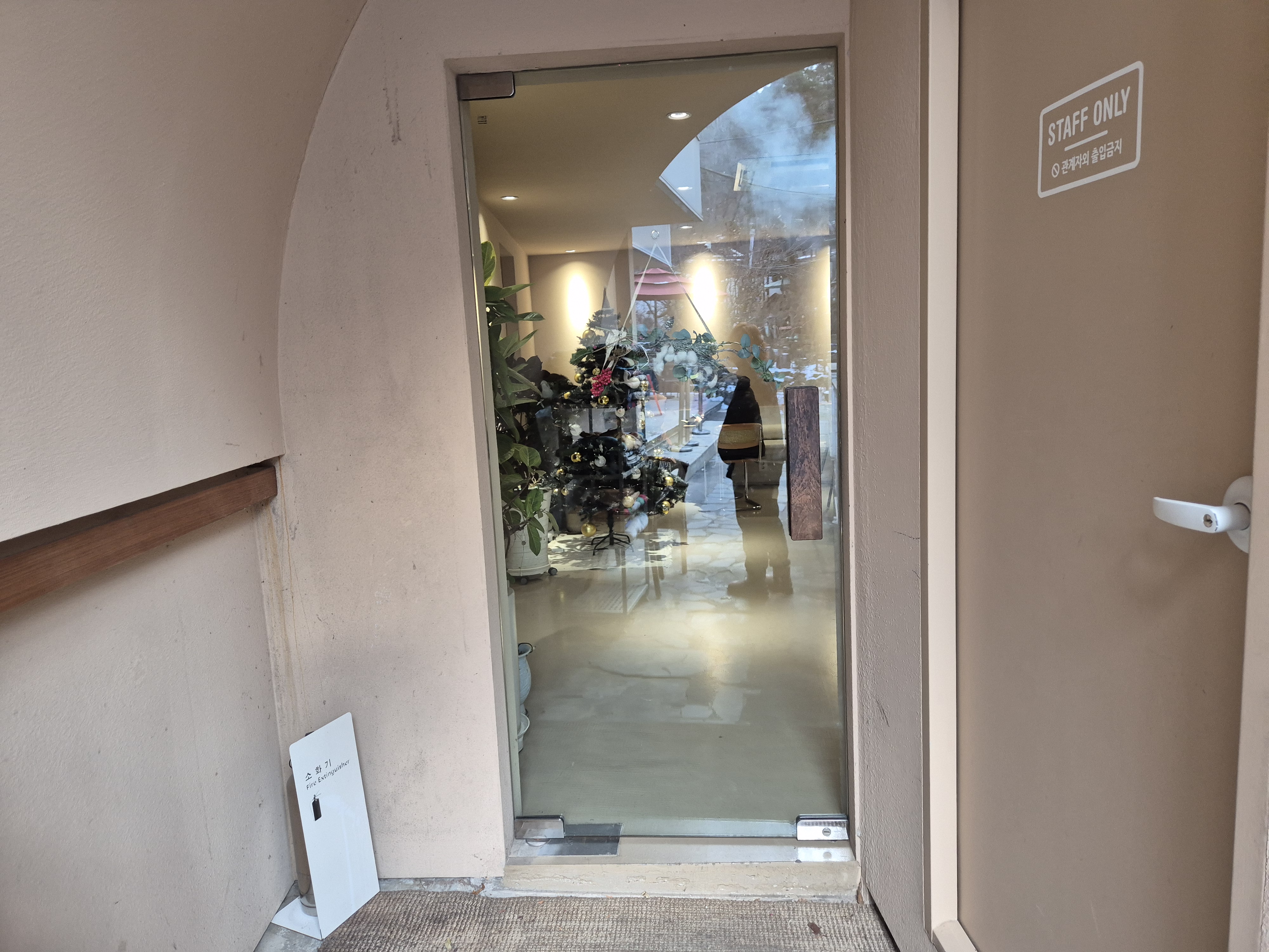 카페 백란 본관에 붙어 있는 실내 출입문