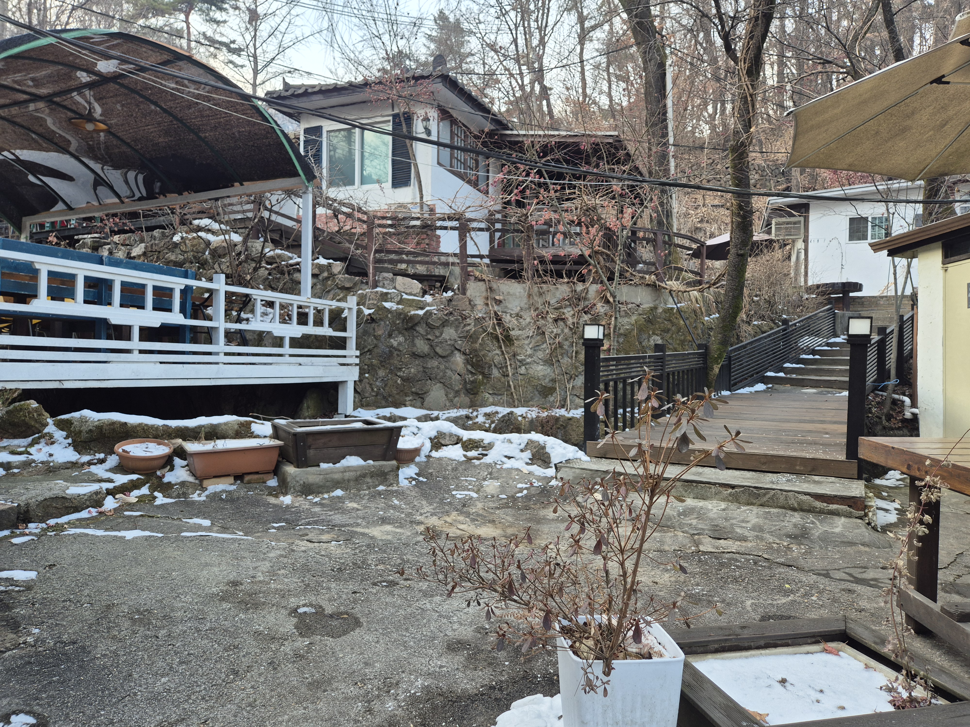 산속 깊이 들어가는 느낌으로 올라가다 보면 별관이 보여요^^ 별관도 잘 꾸며진 느낌이고 본관과 다르게 자연 친화적인 느낌입니다. 여기는 본관과 다소 떨어져 있다보니 커피 주문하고 주문한 음료 받은 다음에 올라가면 좋을 거 같아요. 생각 보다 은근히 넓은 카페 백란.