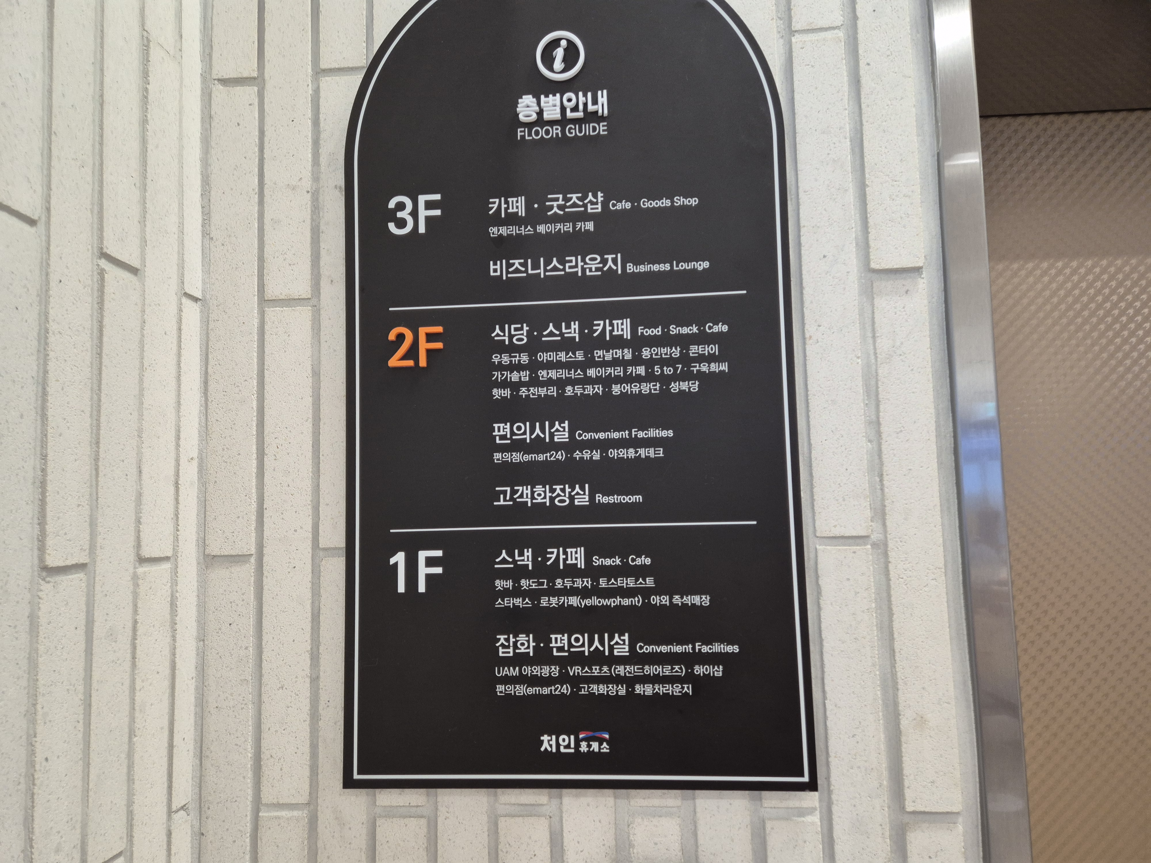 2층에는 이마트 24편의점이 있고요. 가가솥바밥, 콘타이, 커피, 푸드코트가,엔젤리너스, 스낵존이 있어요.