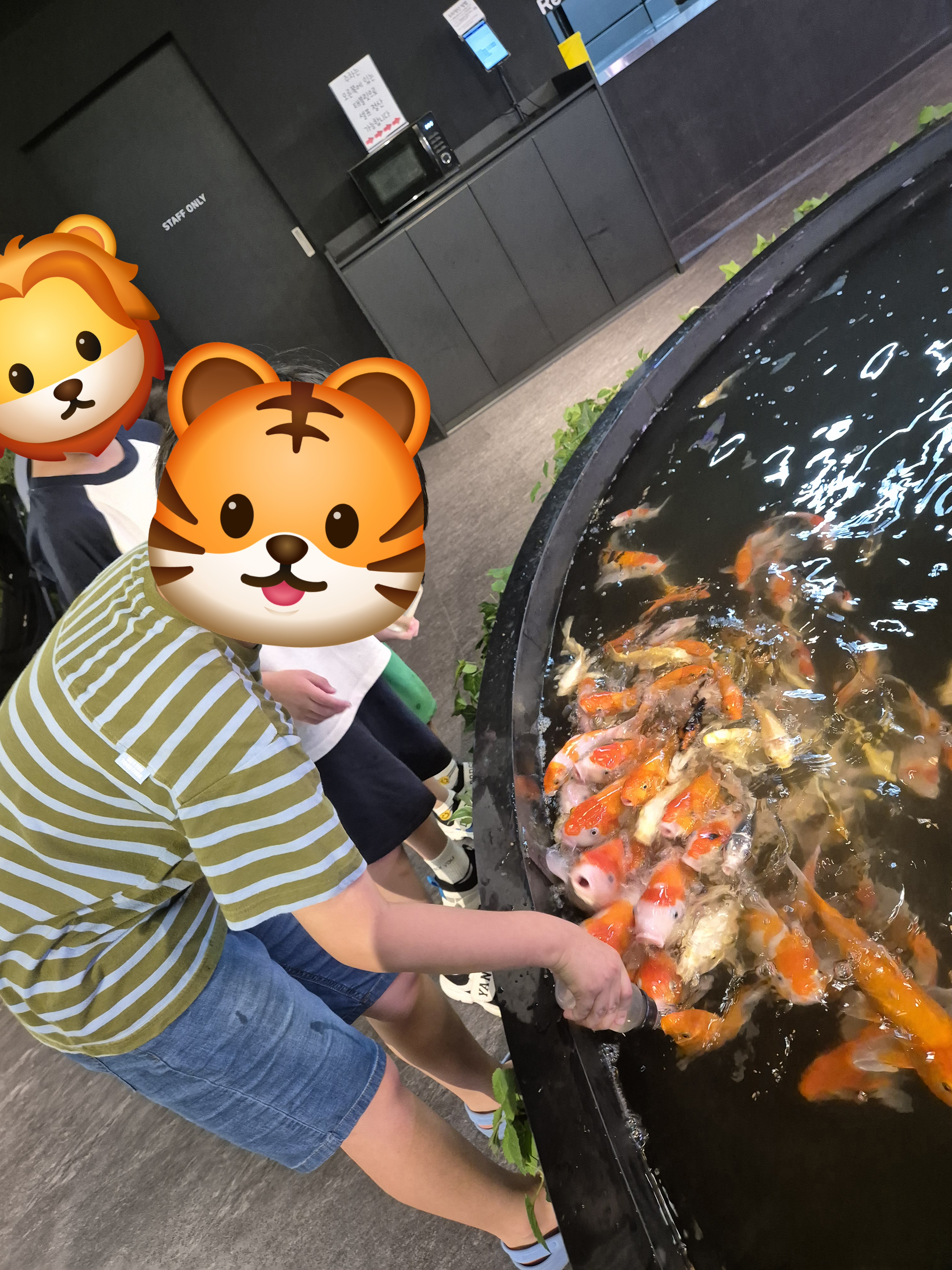 닥터피쉬 체험 해보셨어요? 저는 아직 안 해봤는데... 아이들은 좋아해요 ㅎㅎ 느낌 이상하다고 하면서도 계속 넣고 있는 아이들. 손을 깨끗하게 씻고 체험하시길 바라요~