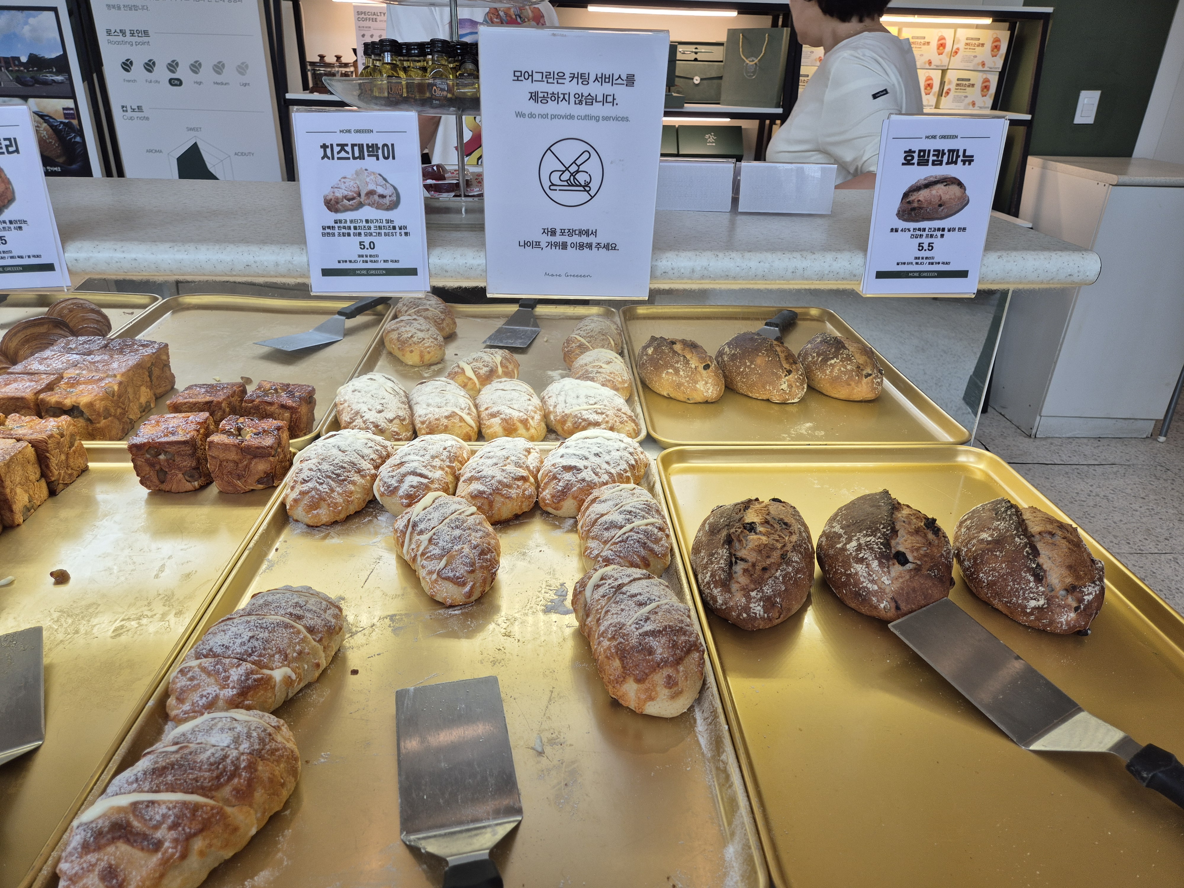 베이커리 카페 치고는 빵종류가 조금은 약소 한편인 거 같은 모어 그린입니다.