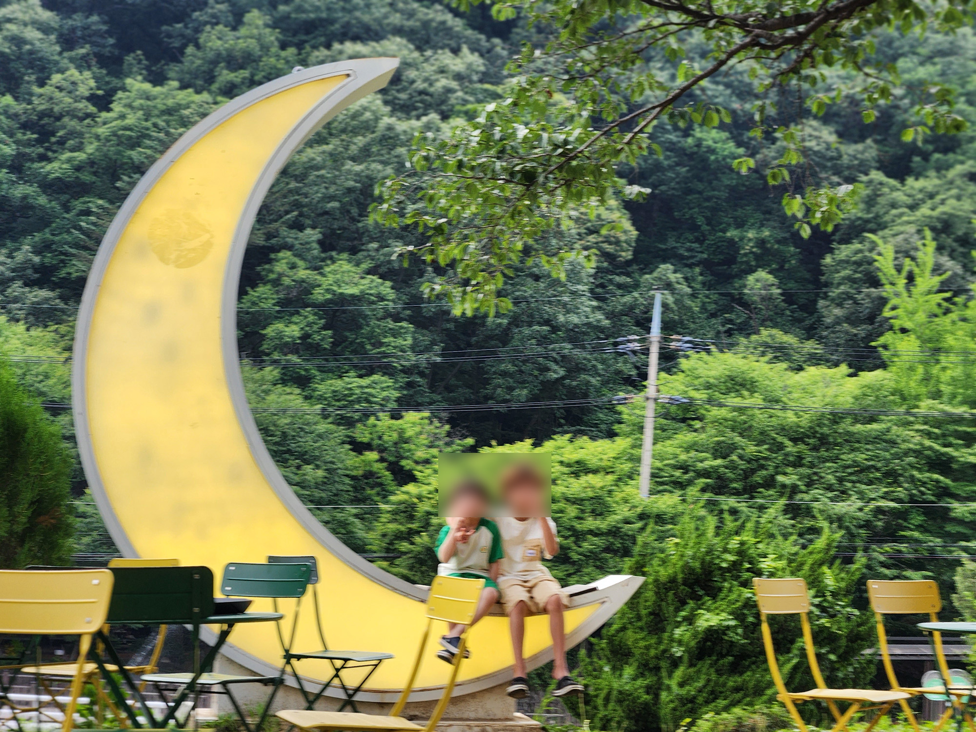 어린이와 함께가면 실내에만 앉아 있기 힘든데 2층 야외와 연결된 공간에서 아이들이 계단에서 가위바위보 게임도 하고 곤충 구경도 하니 엄마아빠는 조금은 여유롭게 카페를 즐길 수 있었어요. 그렇지만 어디든 아이들만 놀게 두면 안되는 거 명심!