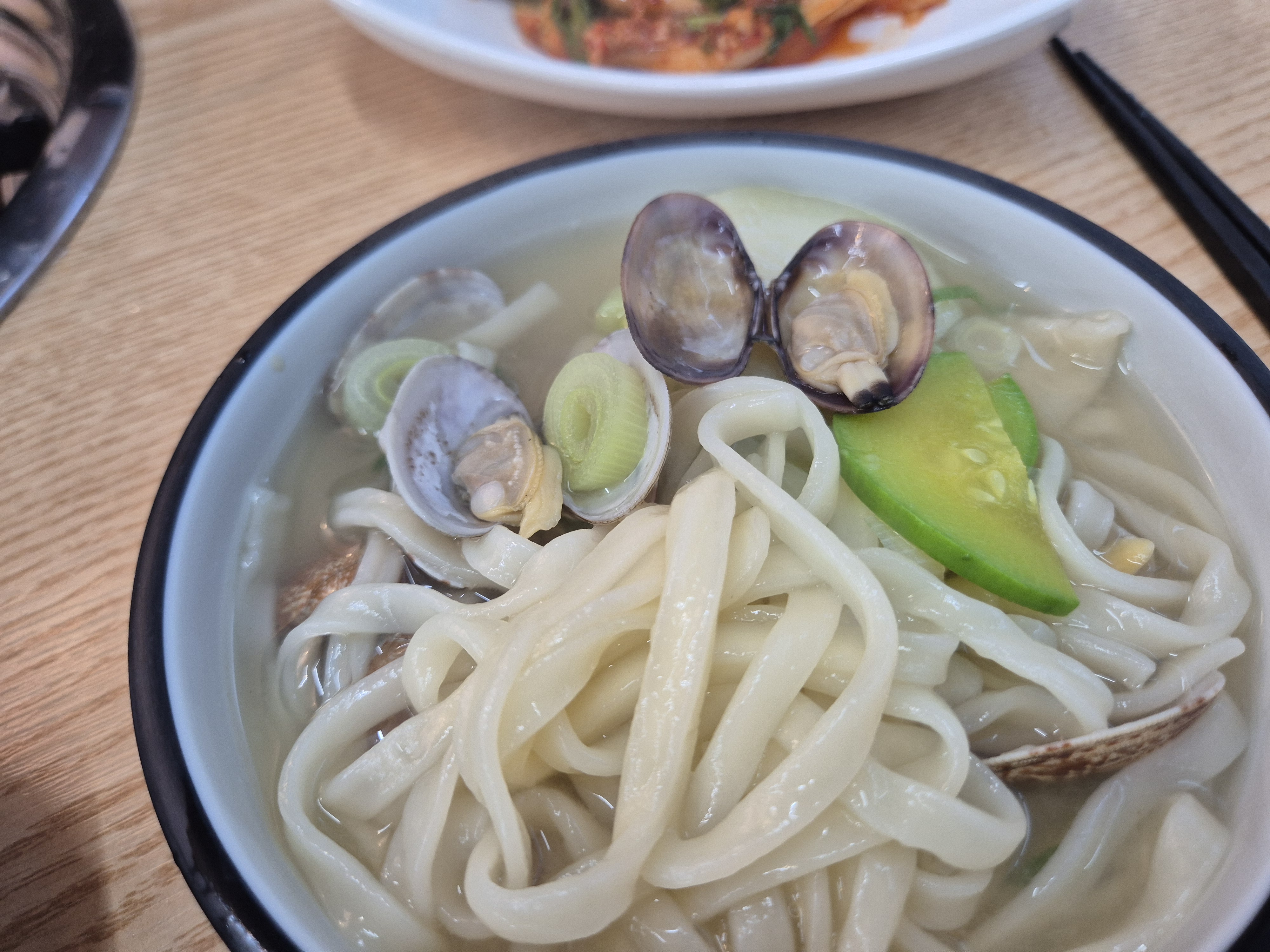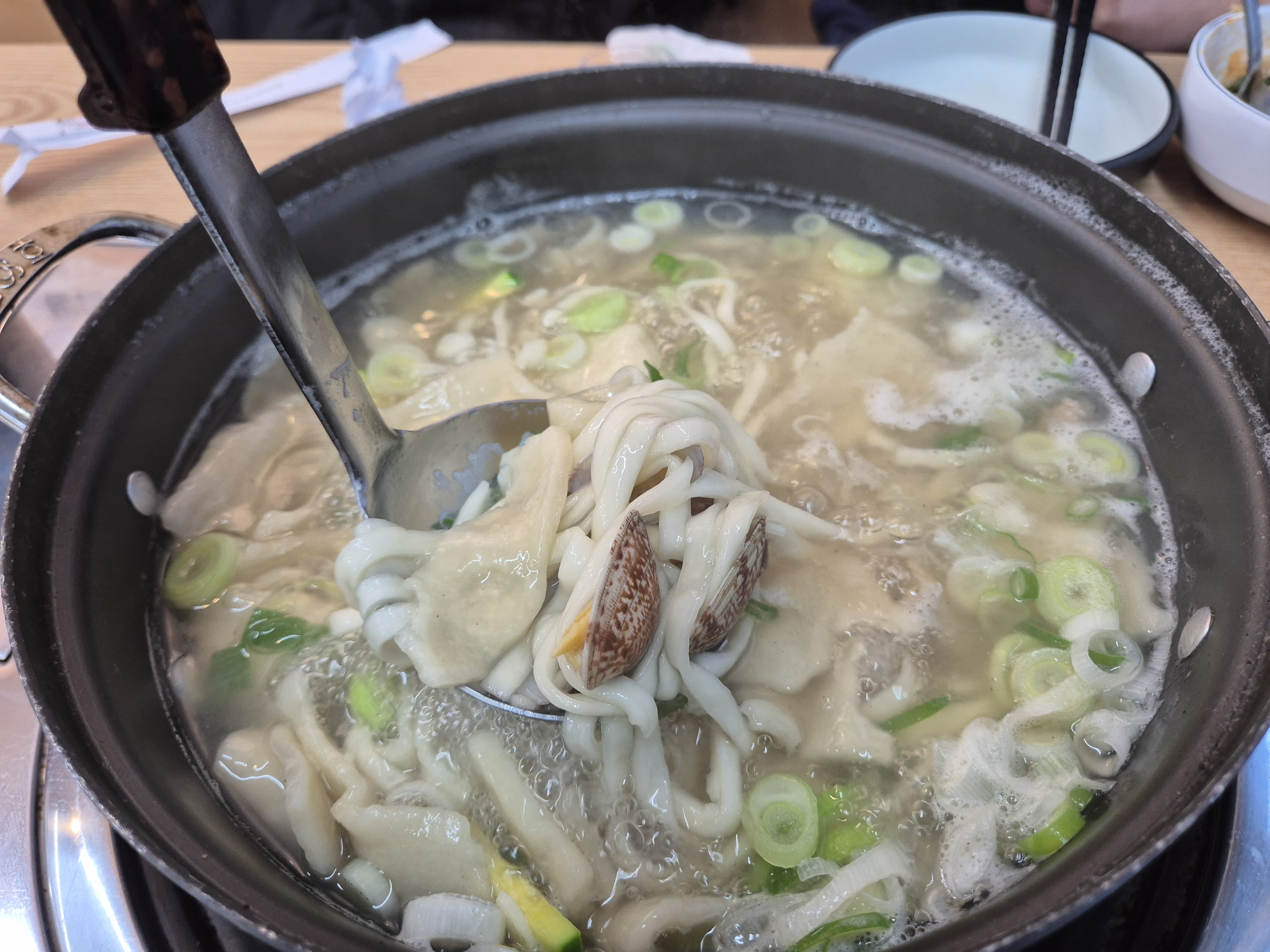 바지락이 잘못 해감하면 모래가 엄청 씹히는데 맛. 칼 칼국수는 해감을 잘한 거 같아요.