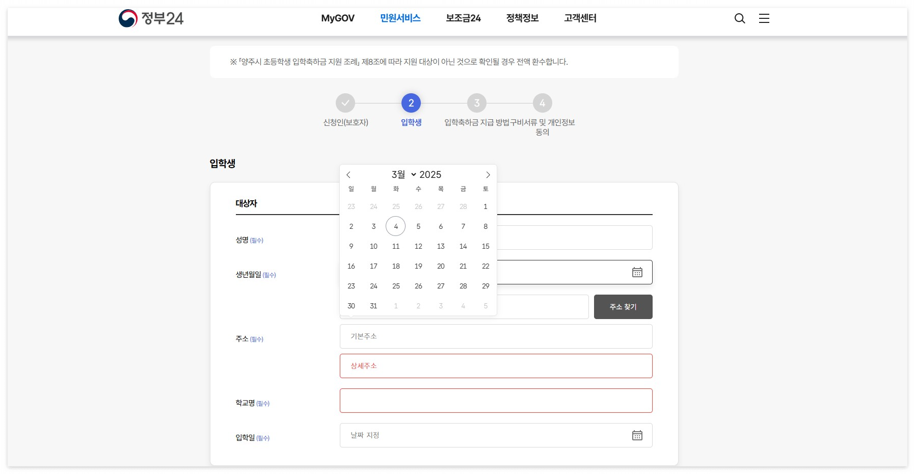 | 2025 경기도 양주시 초등학생 입학 축하금 정부24에서 간편하게 신청하는 방법 (0) | 2025.03.05 |