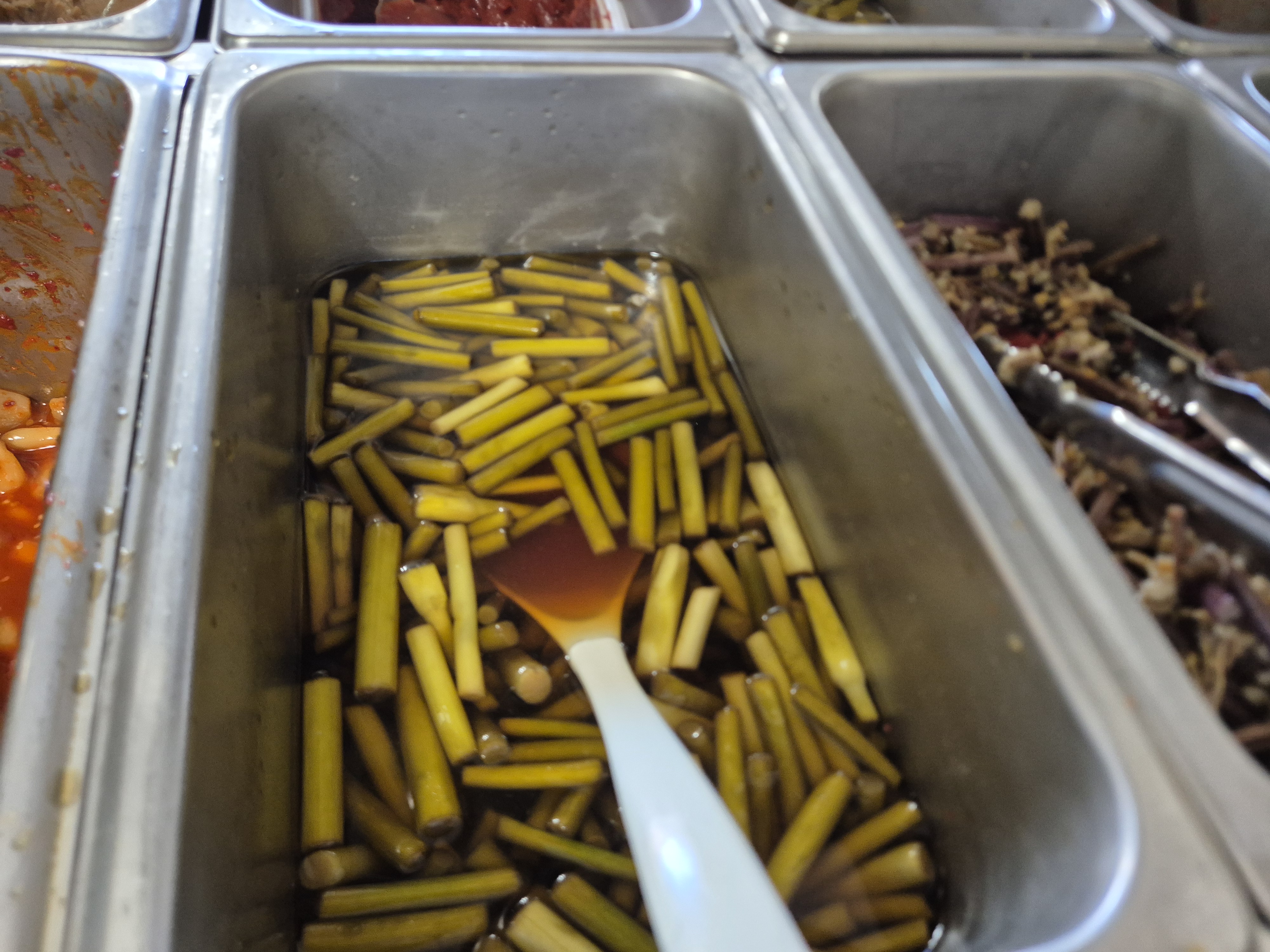 셀프바에 쌈채소 있지요. 쌈은 적상추, 청상추, 적겨자, 케일, 배추, 곱슬겨자,치콘이 있어요. 반찬도 여기서 가져다 먹으면 돼요.