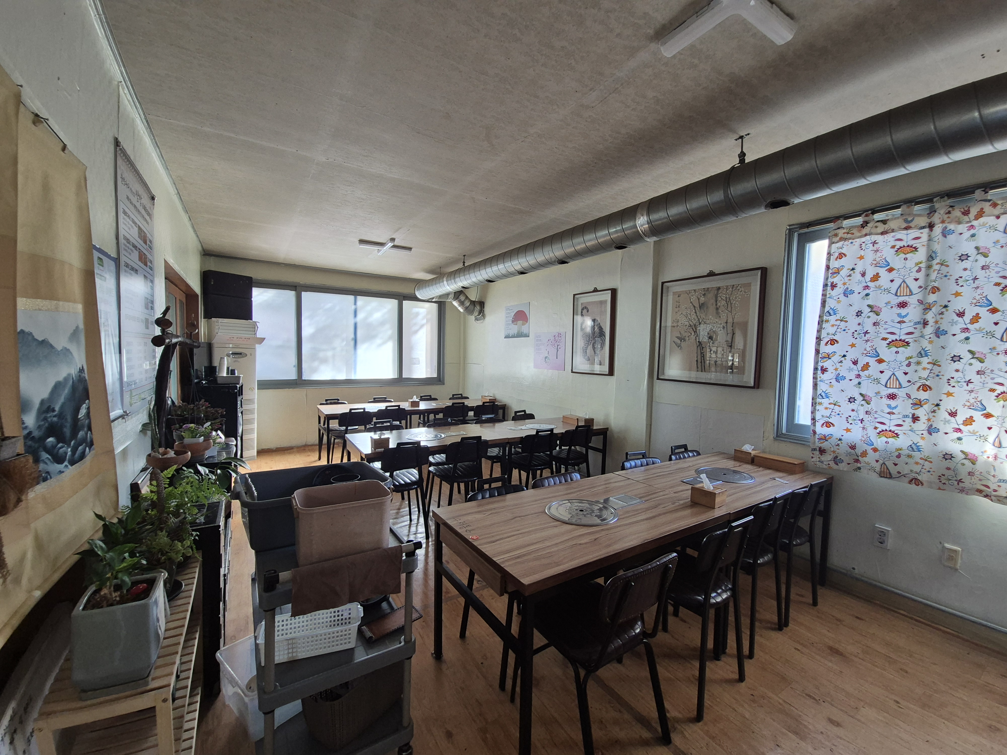처음부터 셀프바에서 직접 가져다 드시면 됩니다. 추가 반찬도 셀프바에서 갖다 드시면 됩니다. 주방 바로 옆으로 화장실 가는 길이 있고요. 벽에 보니 와이파이도 적혀 있는데.. 냉장고에 가려서 잘 안보이더라고요^^;;