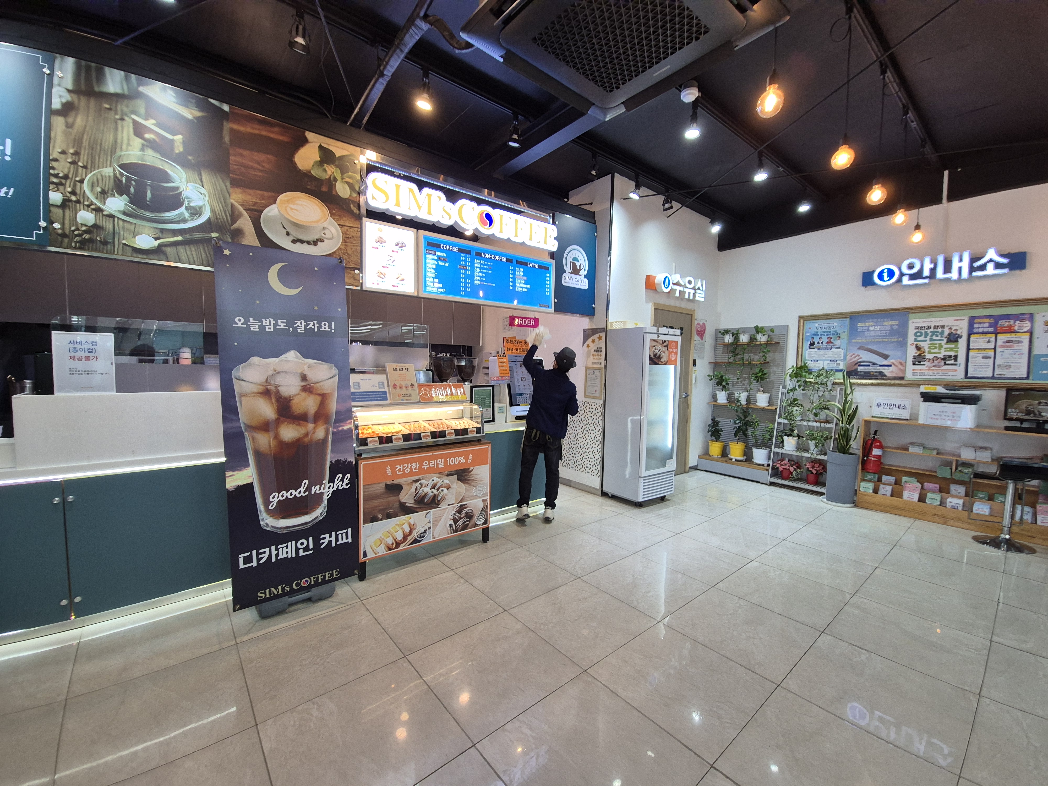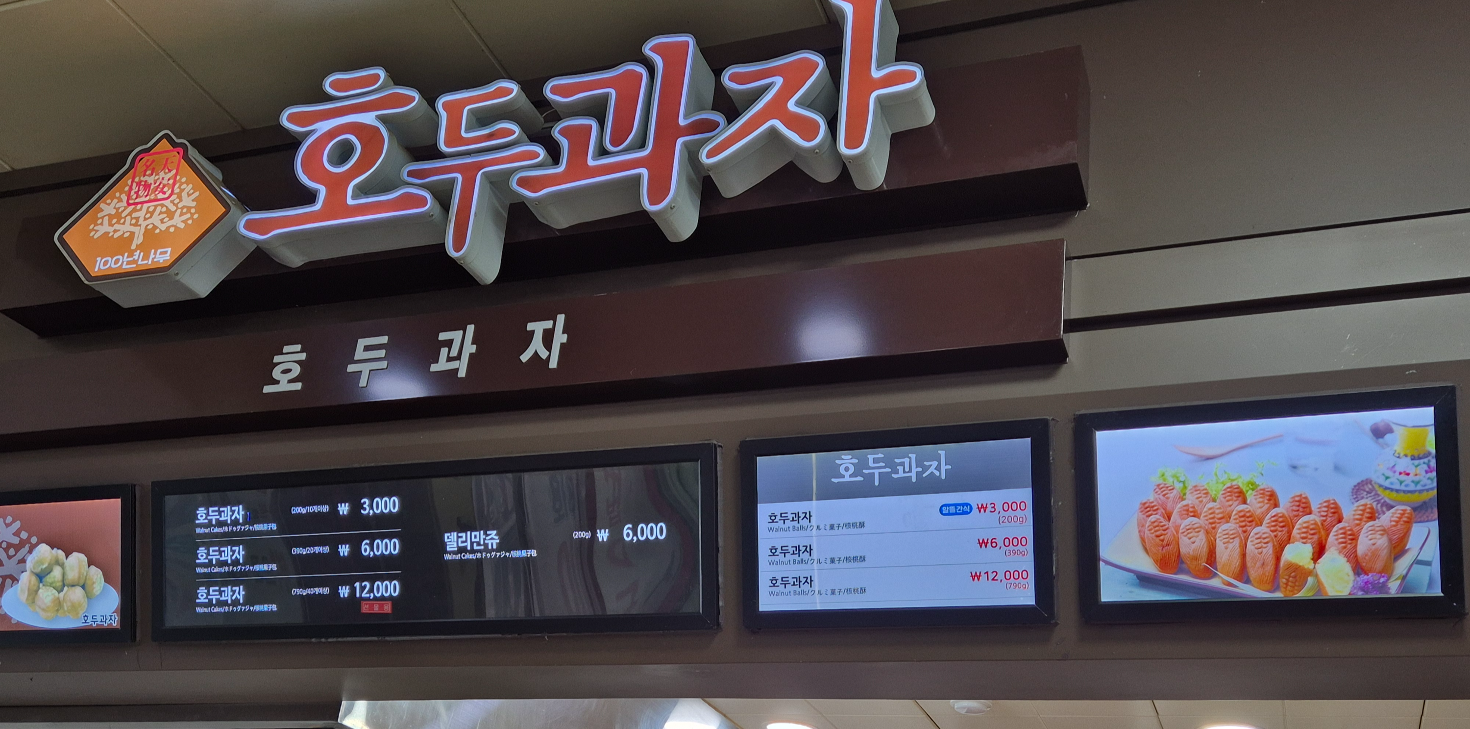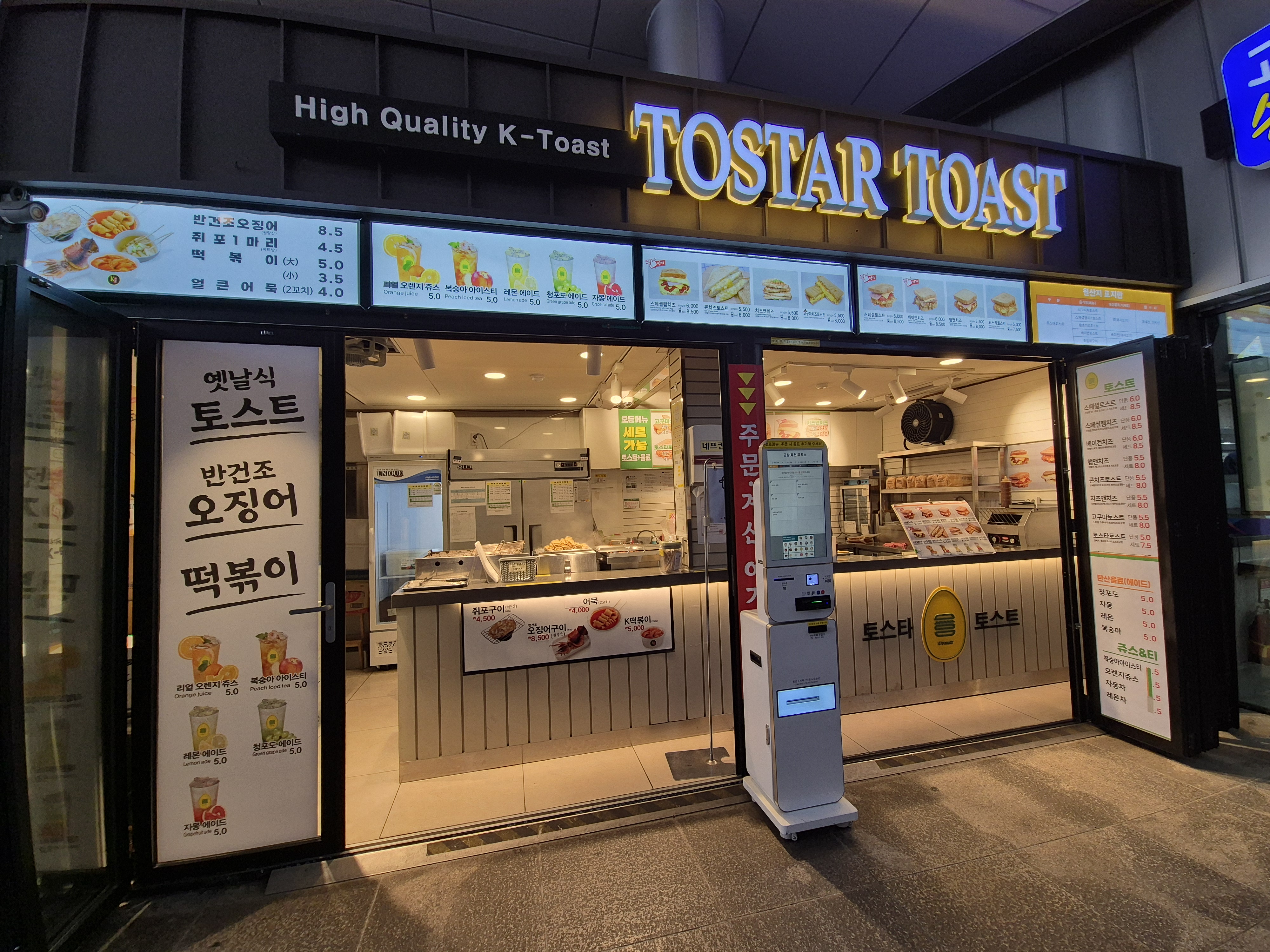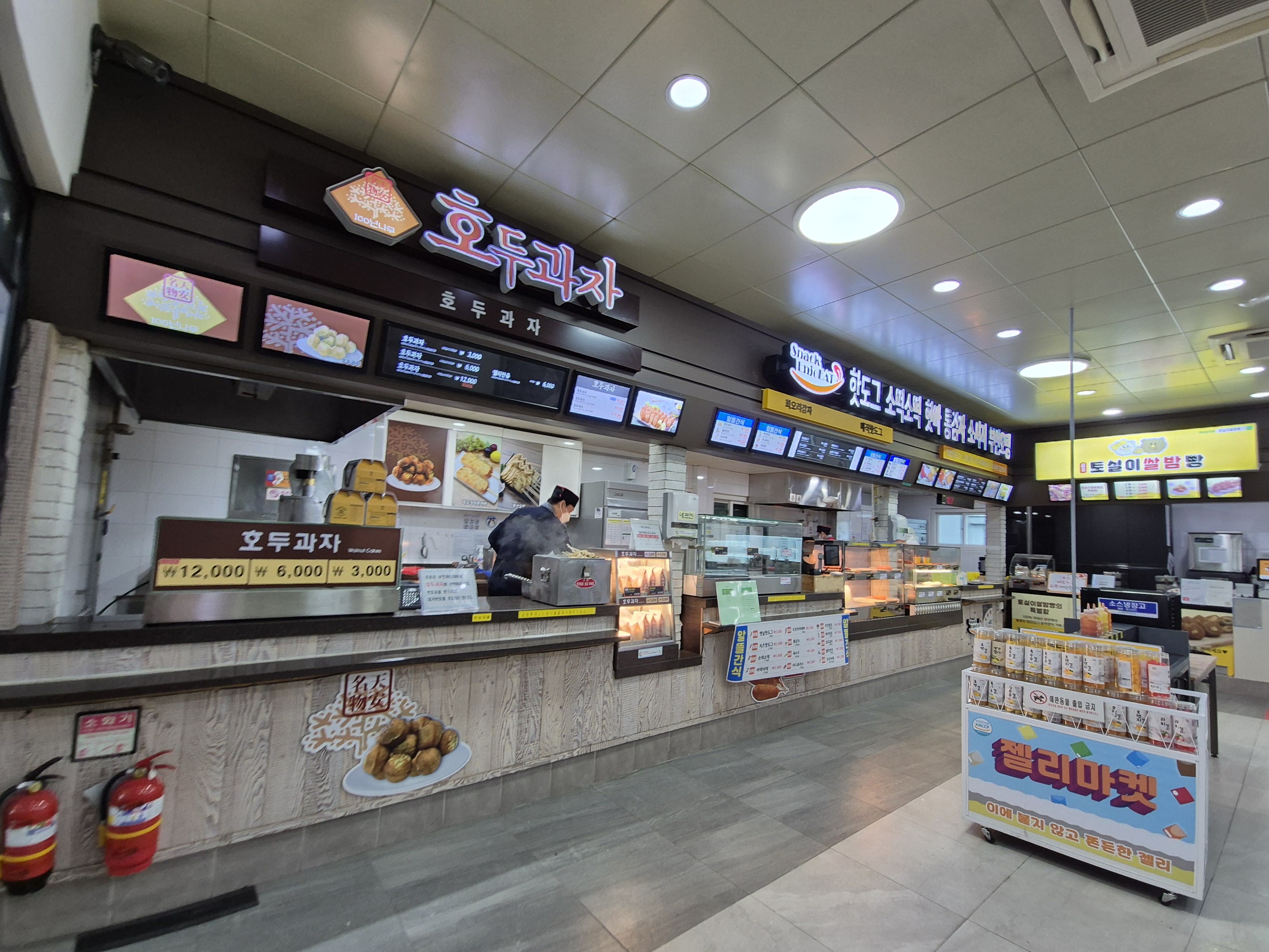 로봇커피, 토스트, 호두과자,십원빵, 핫도그, 소떡소떡, 쌀밤빵, 엔젤리너스, '브라더꽈배기' (이영자 님이 전참시에 드시는 게 나와서 유명해짐.) 모든 주문은 키오스크로 하시면 되요.