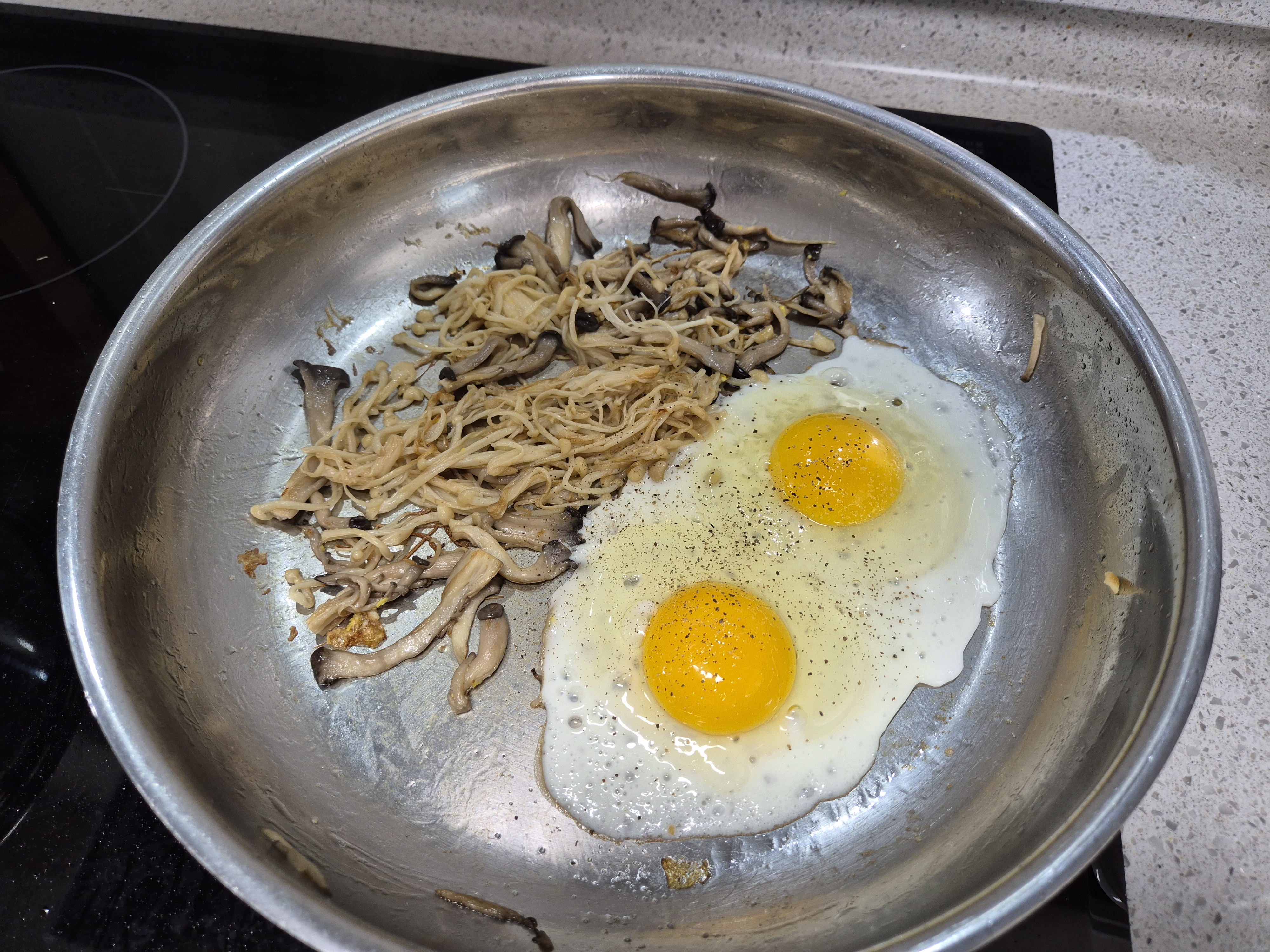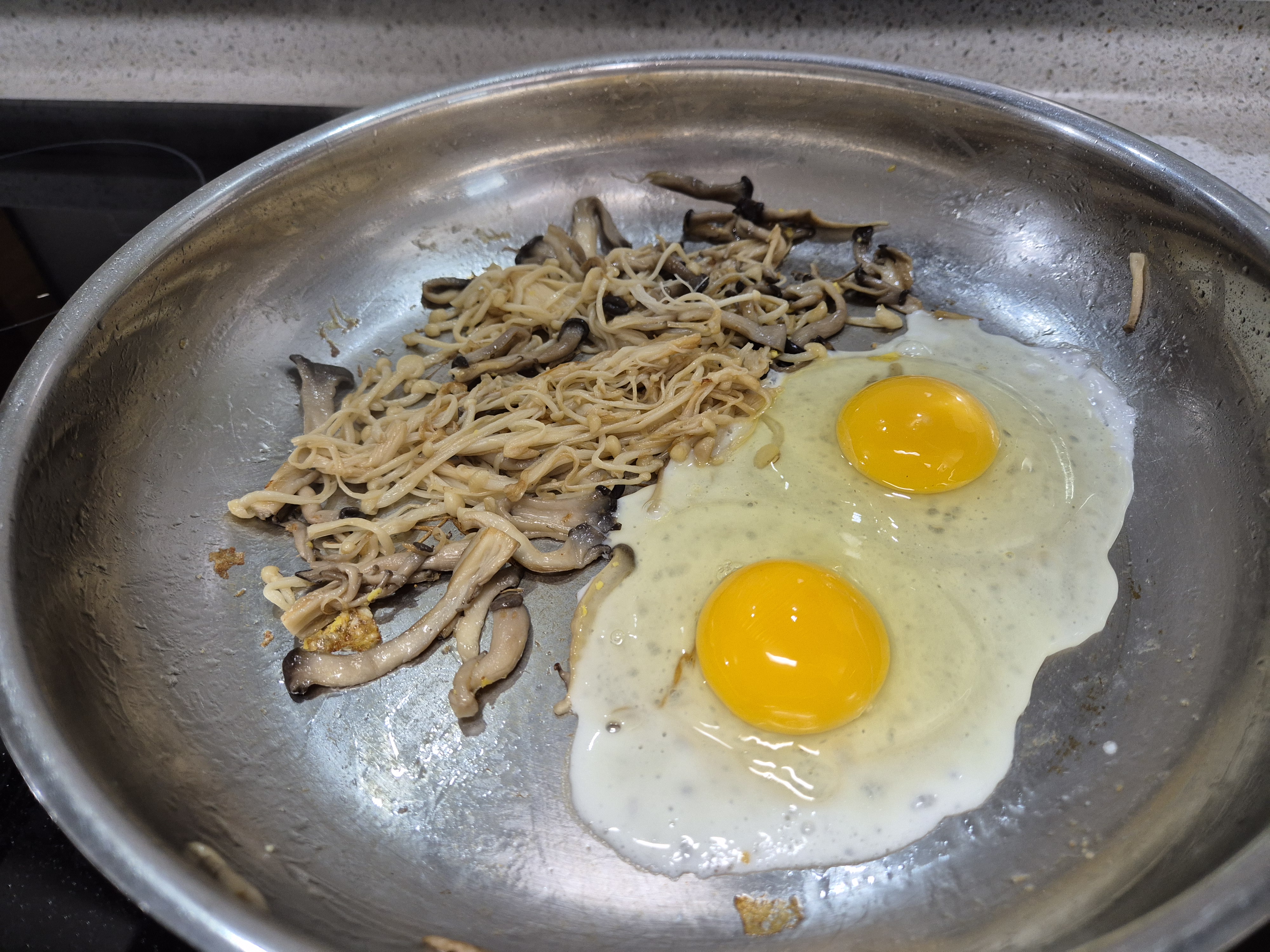 보통은 느타리버섯, 팽이버섯, 표고버섯을 주로 사용해요. 양은 충분히 배가 찰 정도로 준비해주고 있어요. 버섯, 계란. 두 재료 다이어트 재료로 딱! 칼로리도 낮고 포만감도 Good.
