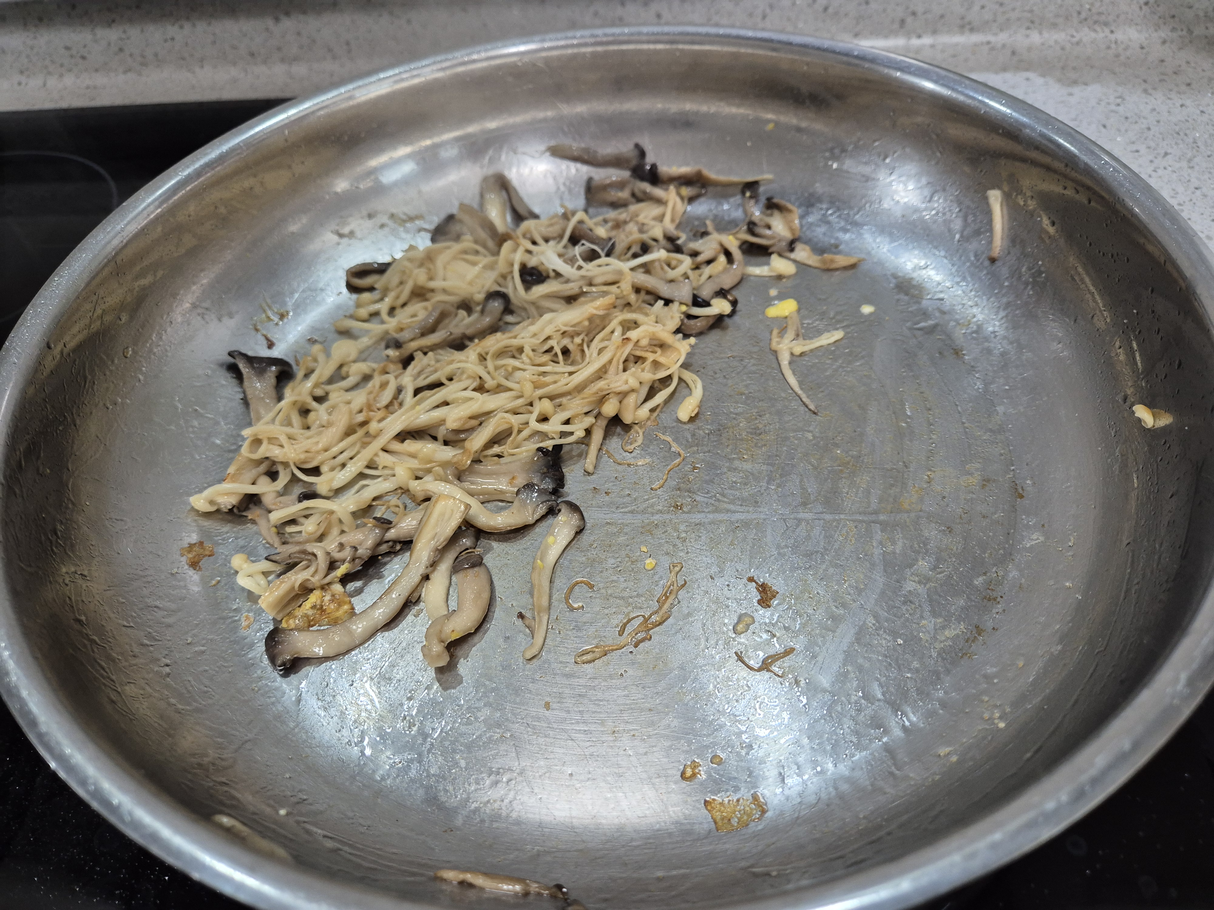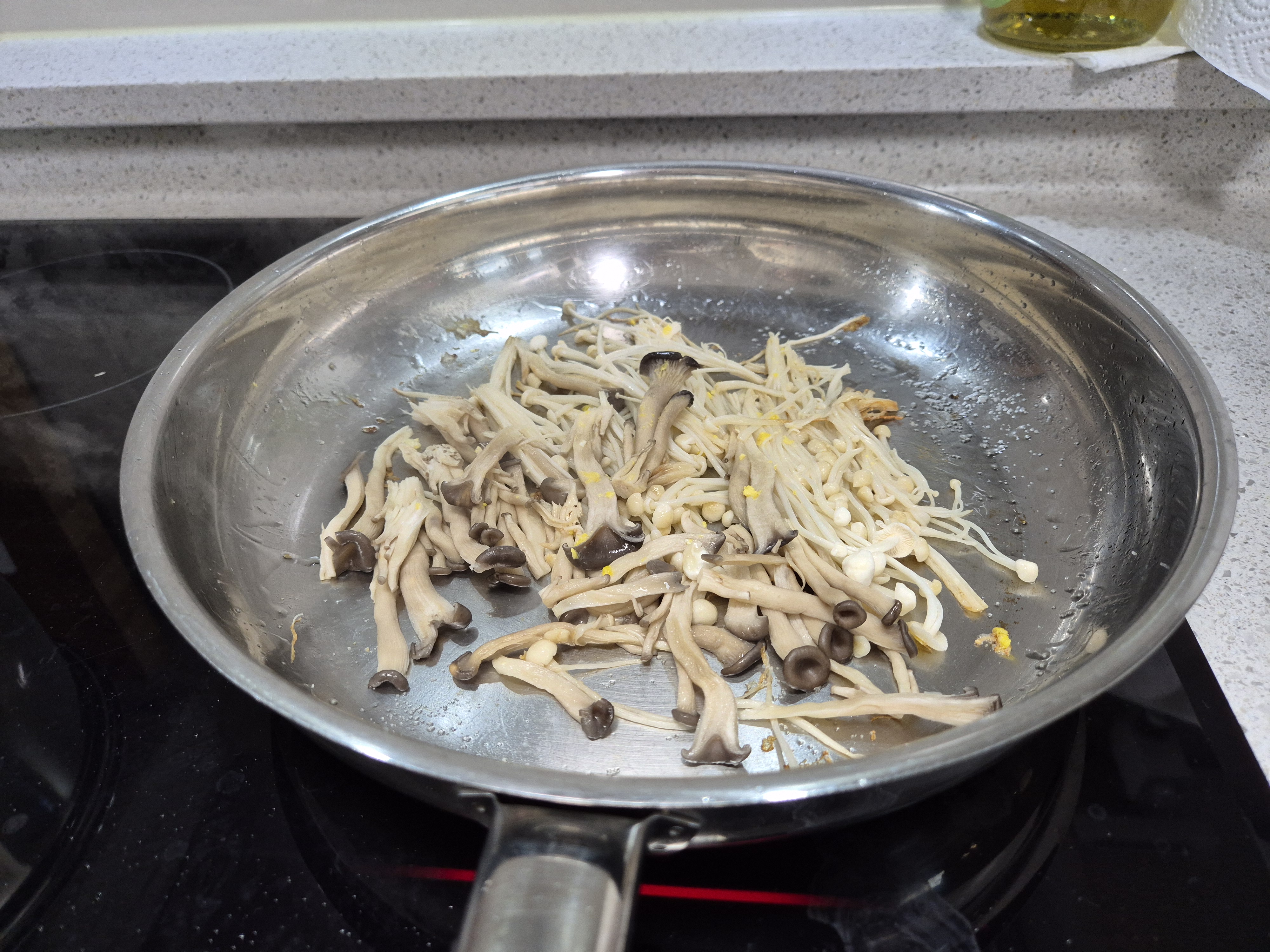 1. 잘 달궈진 프라이팬이 버섯을 넣고 볶아주세요.