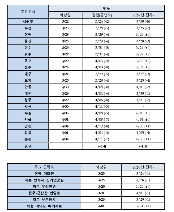 2025 벚꽃 개화 예상 시기 정보 확인