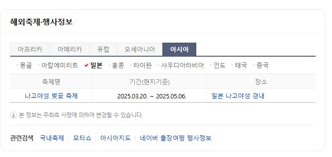 다른 지역은 축제 기간이 안나왔던데 나고야성 벚꽃 축제는 올해 3월 20일 부터 5월 6일 까지 라고 나오네요. 생각보다 축제 기간이 긴데..... 오류 일까요?^^;;;