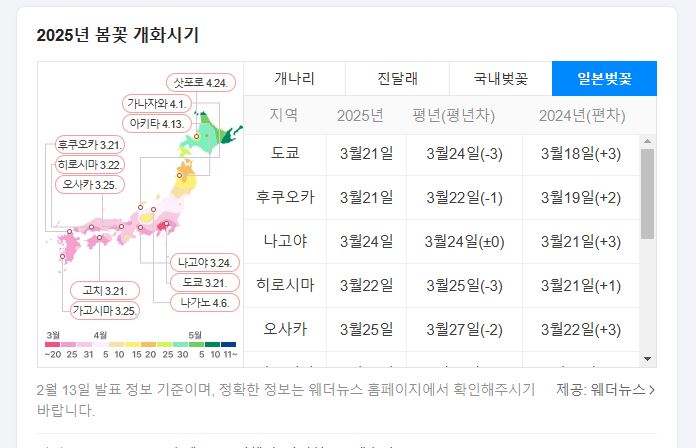 2025.02.28 - [여행하는 수내이도] - 2025년 봄 벚꽃 놀이 가기 위한 준비 벚꽃 개화 예상 시기를 한눈에 알아 봅시다.