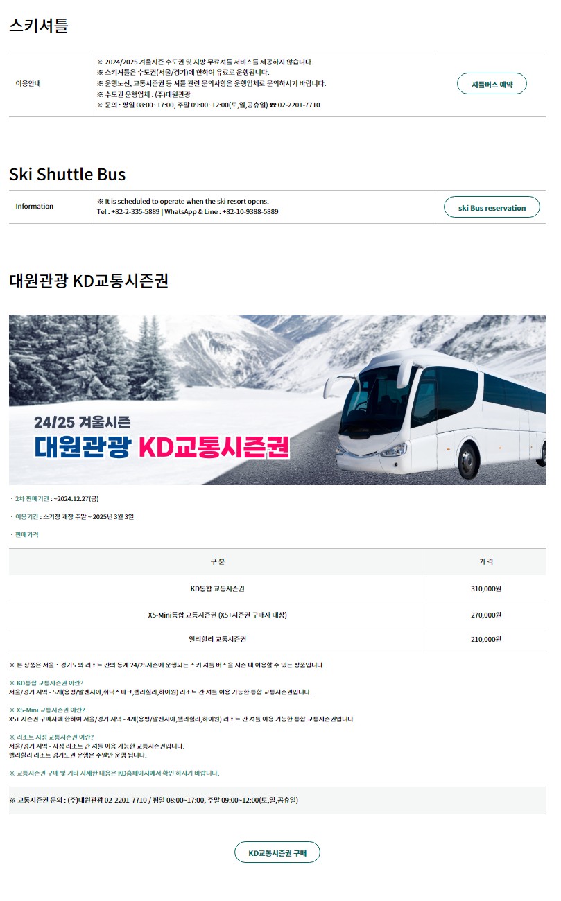 스키장마다 스키 셔틀 버스를 시즌에는 운영을 했었는데요. 24/25시즌은 수도권 및 지방 무료 셔틀버스를 제공하지 않는다고 해요.무료는 없지만 유료는 있는... ㅎㅎ// 아래 셔틀버스 안내 올려 두겠습니다.